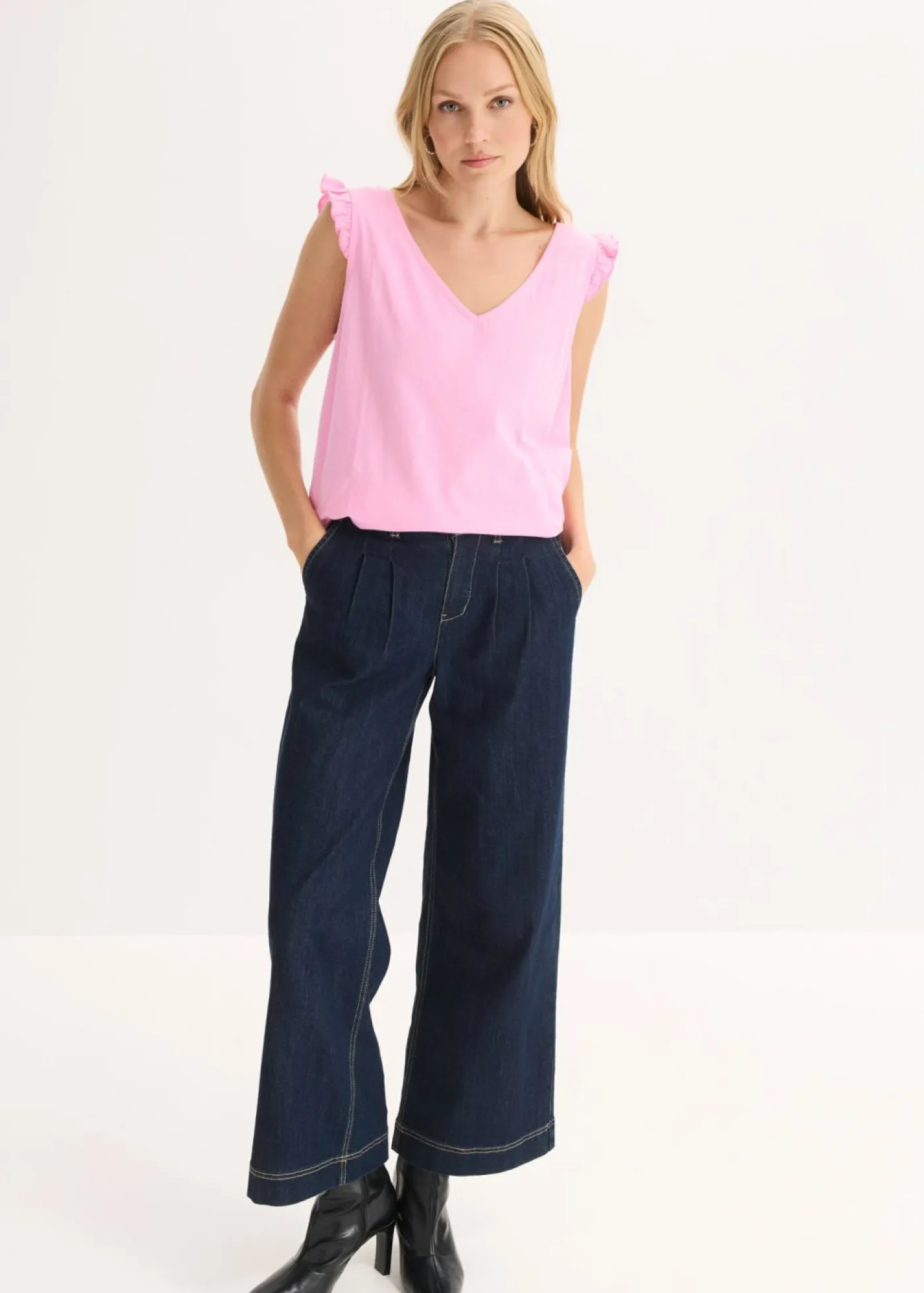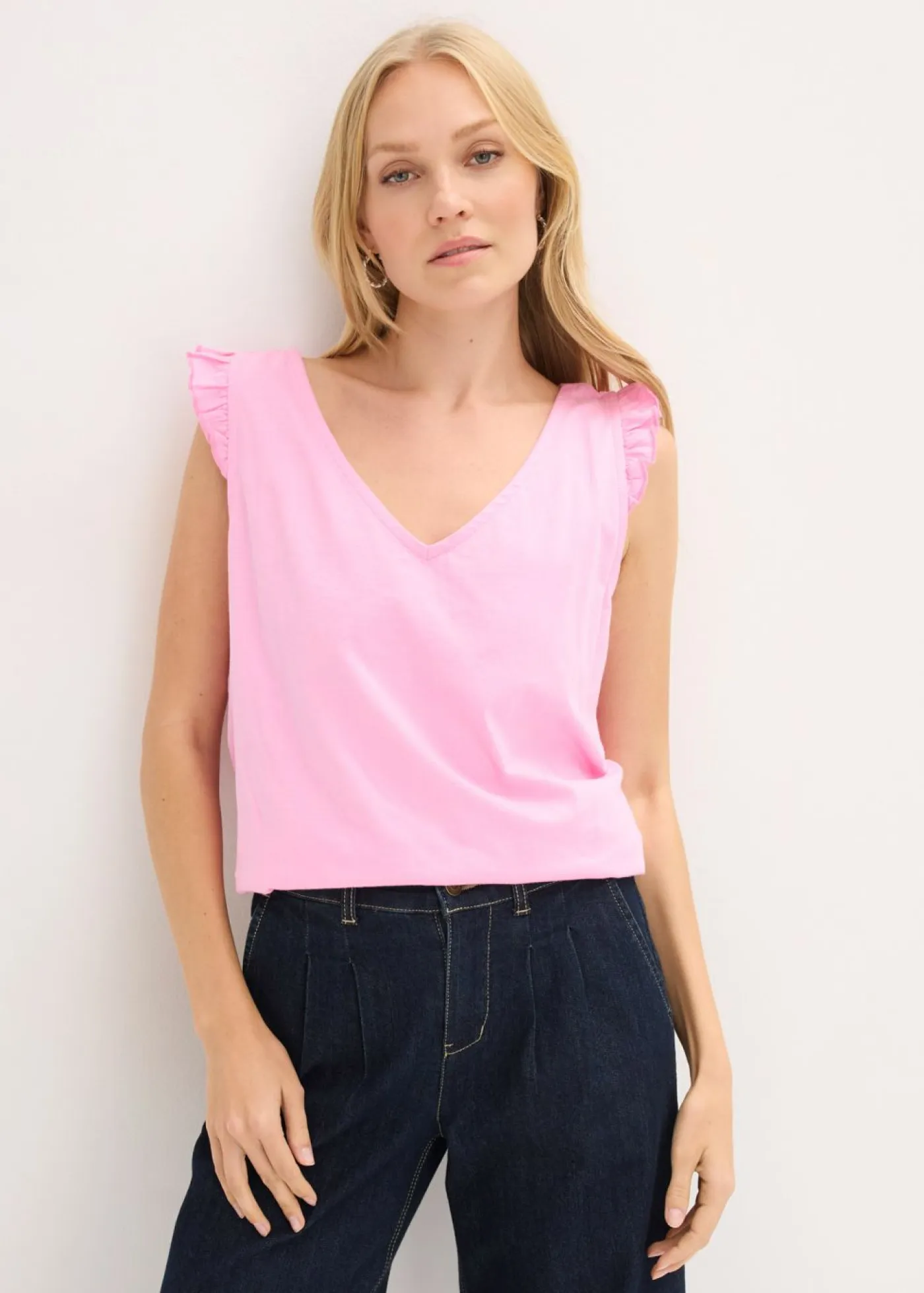 Top con volantes. Dobladillo redondeado. Largo de aprox. 64 cm en talla 38.