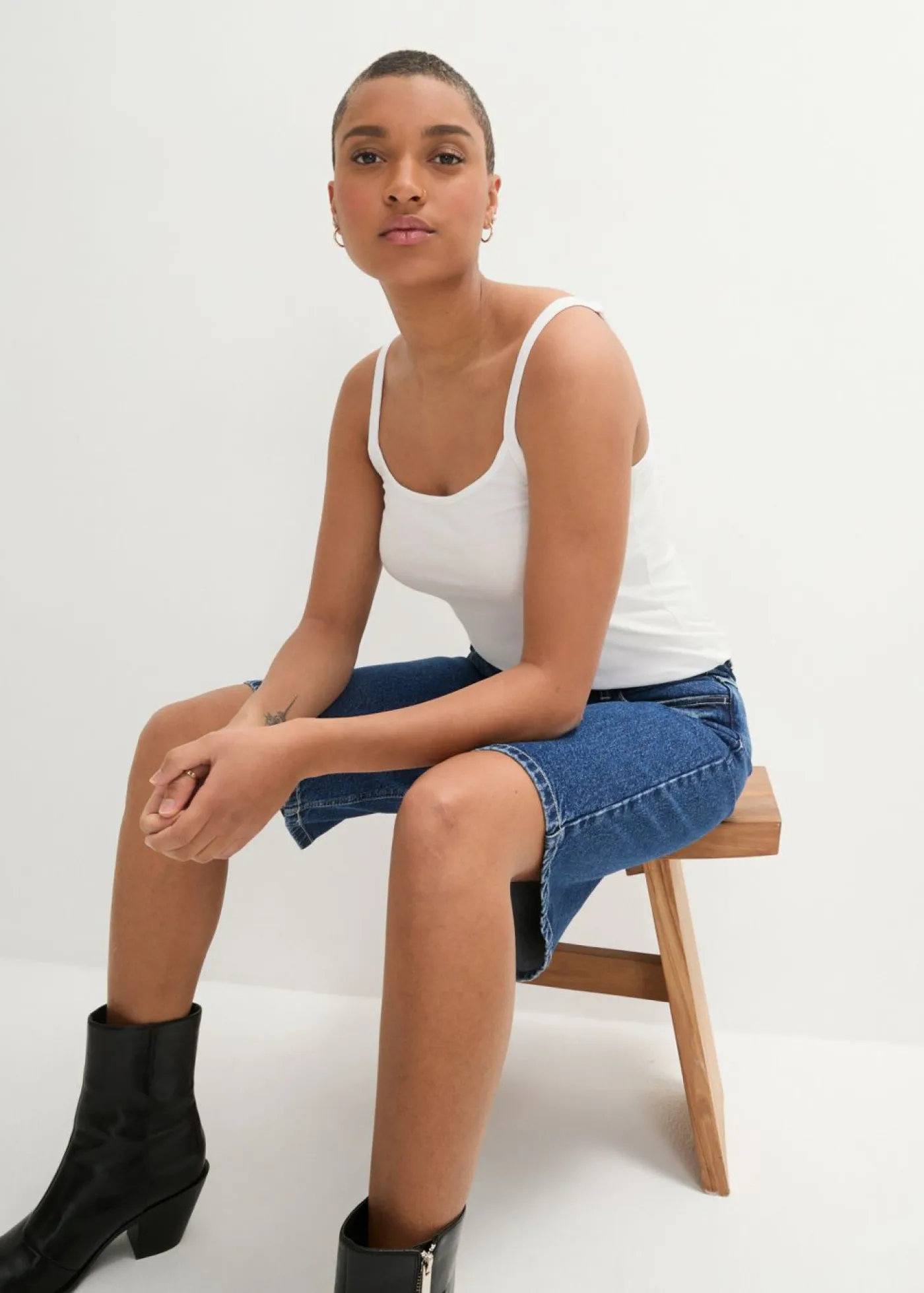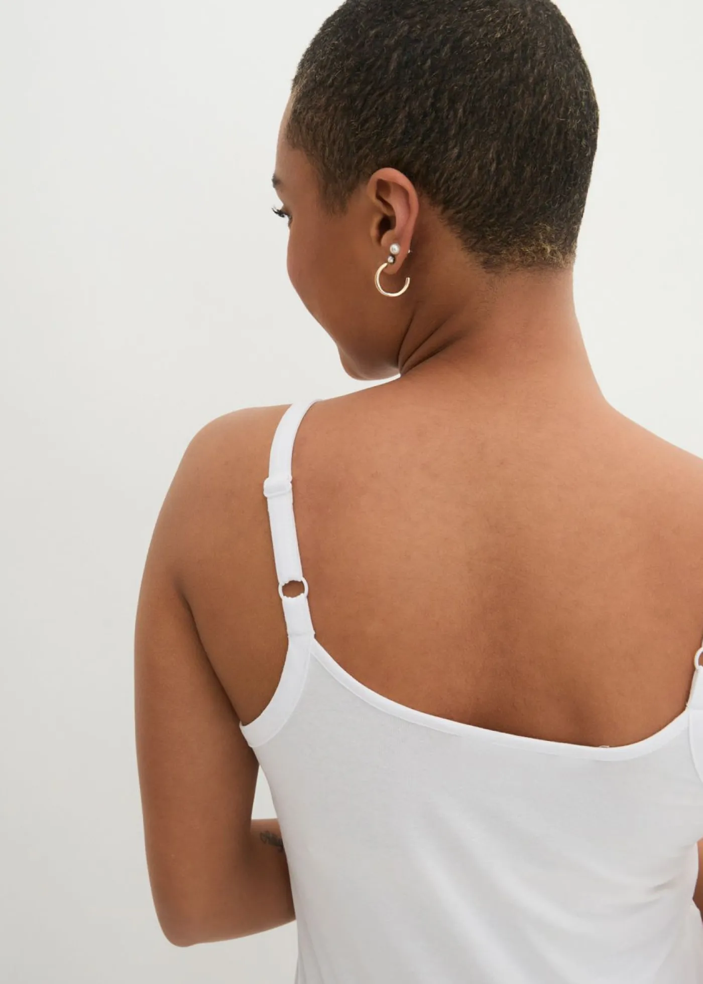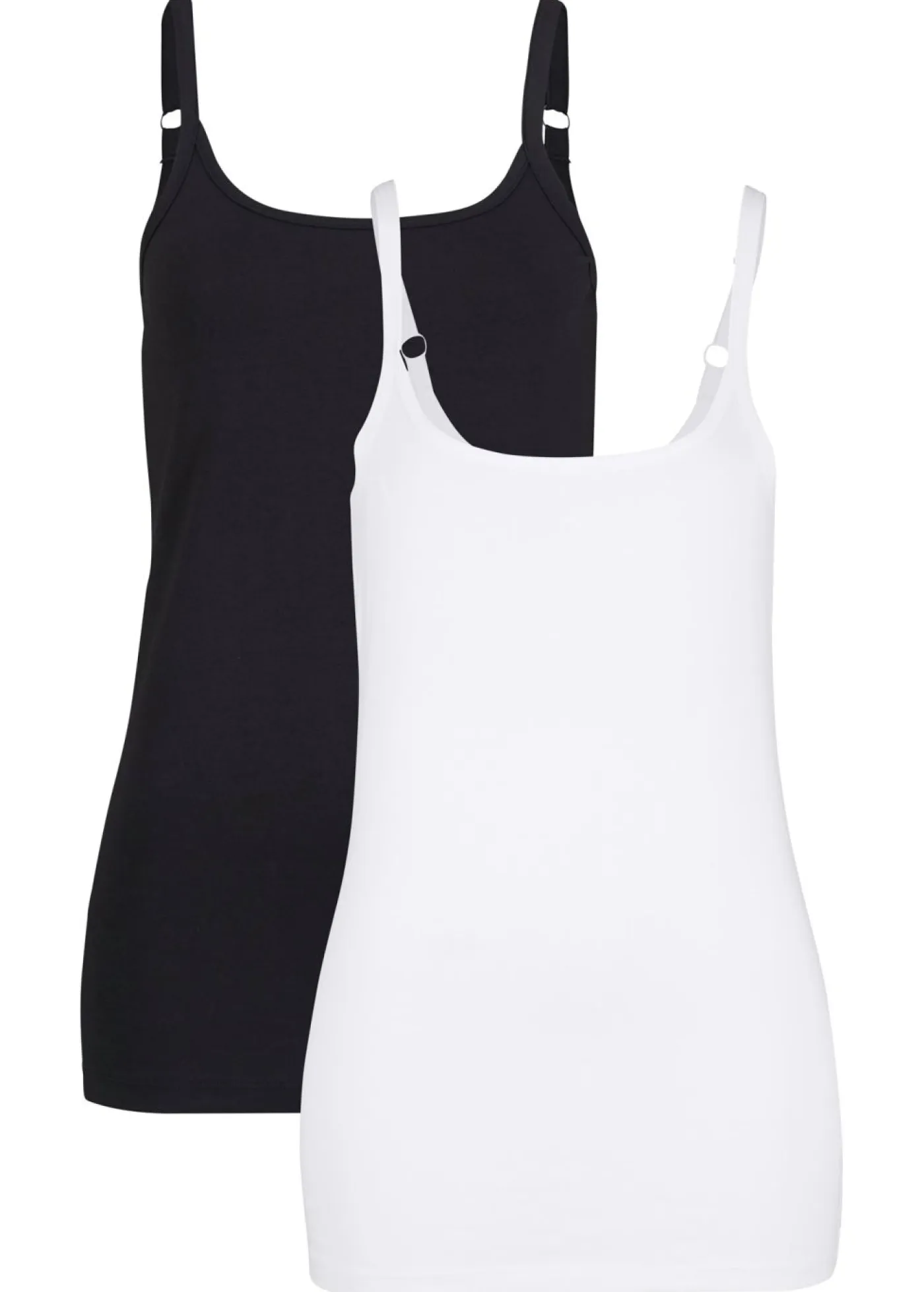 Top con tirantes finos y corte largo de algodón (2 unidades). Largo de aprox. 68 cm (talla 36/38) a aprox. 78 cm (talla 56/58). Se puede lavar a máquina.