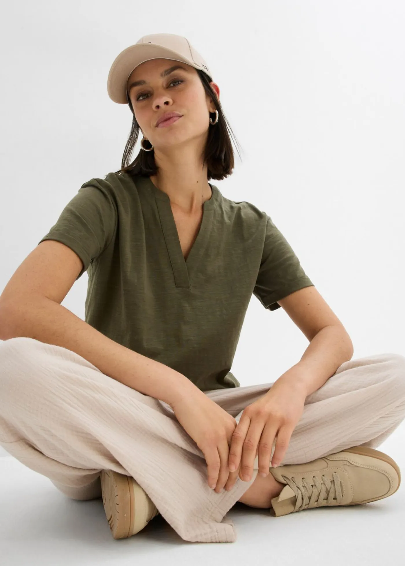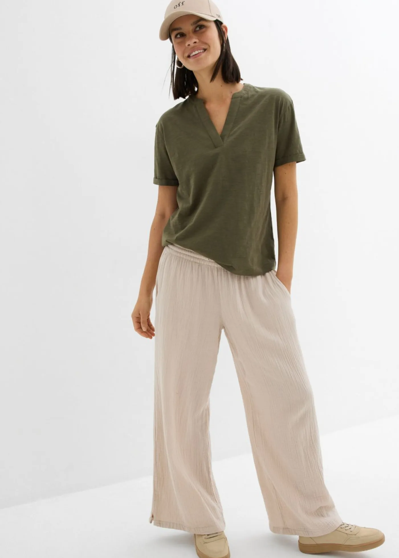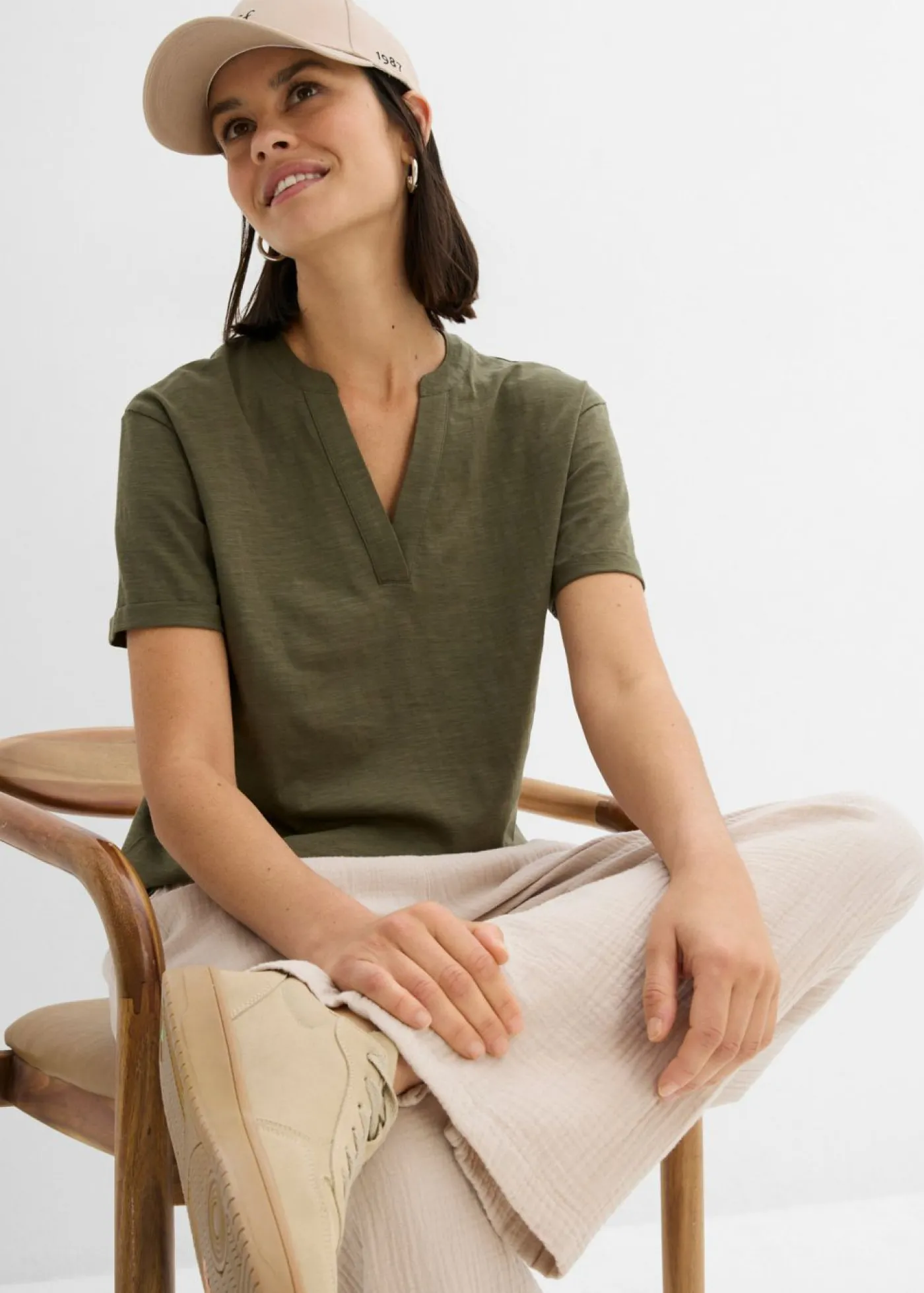 Túnica con escote pronunciado en V y corte cómodo. Largo total de aprox. 62 cm en talla 40/42. Se puede lavar a máquina.