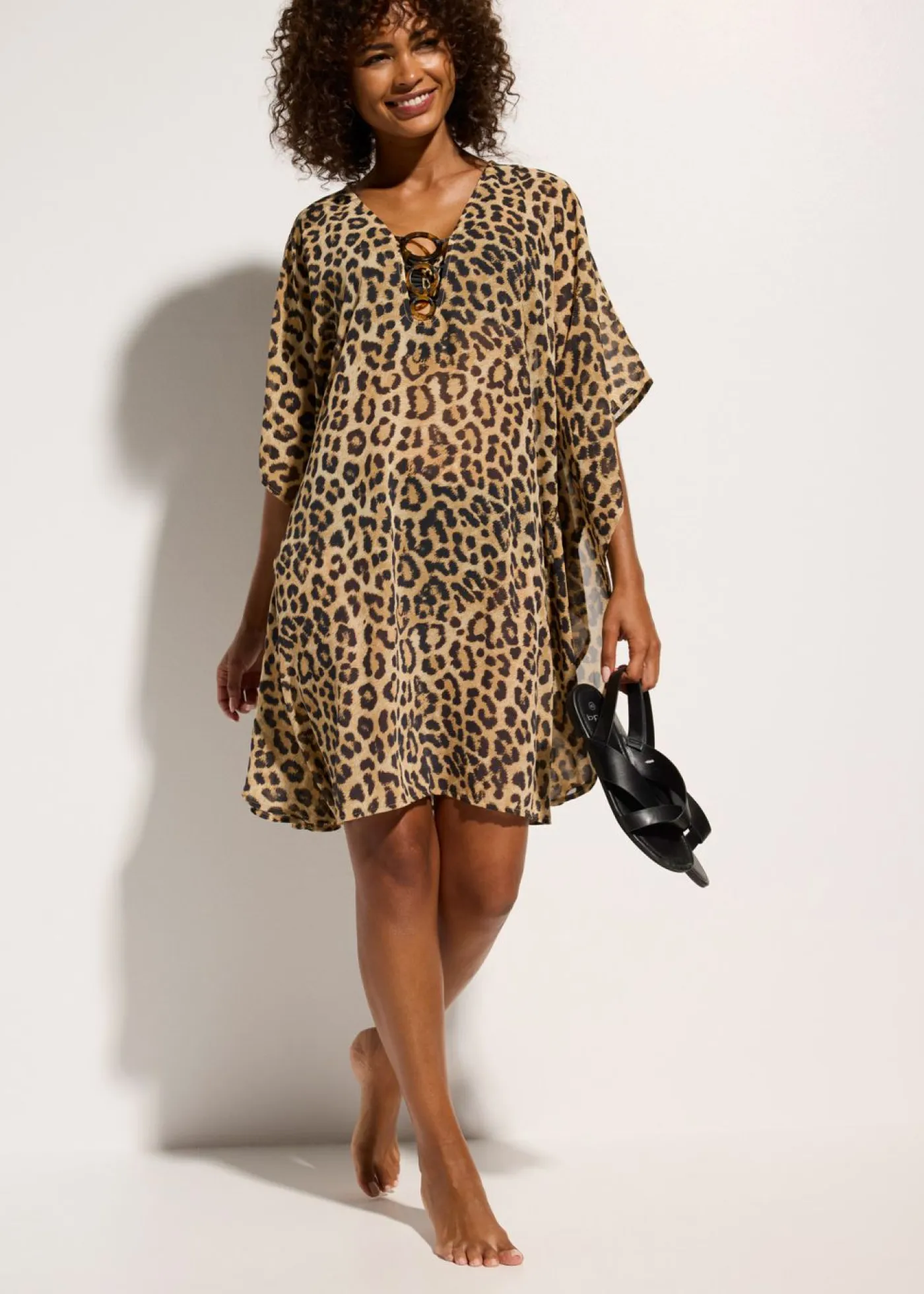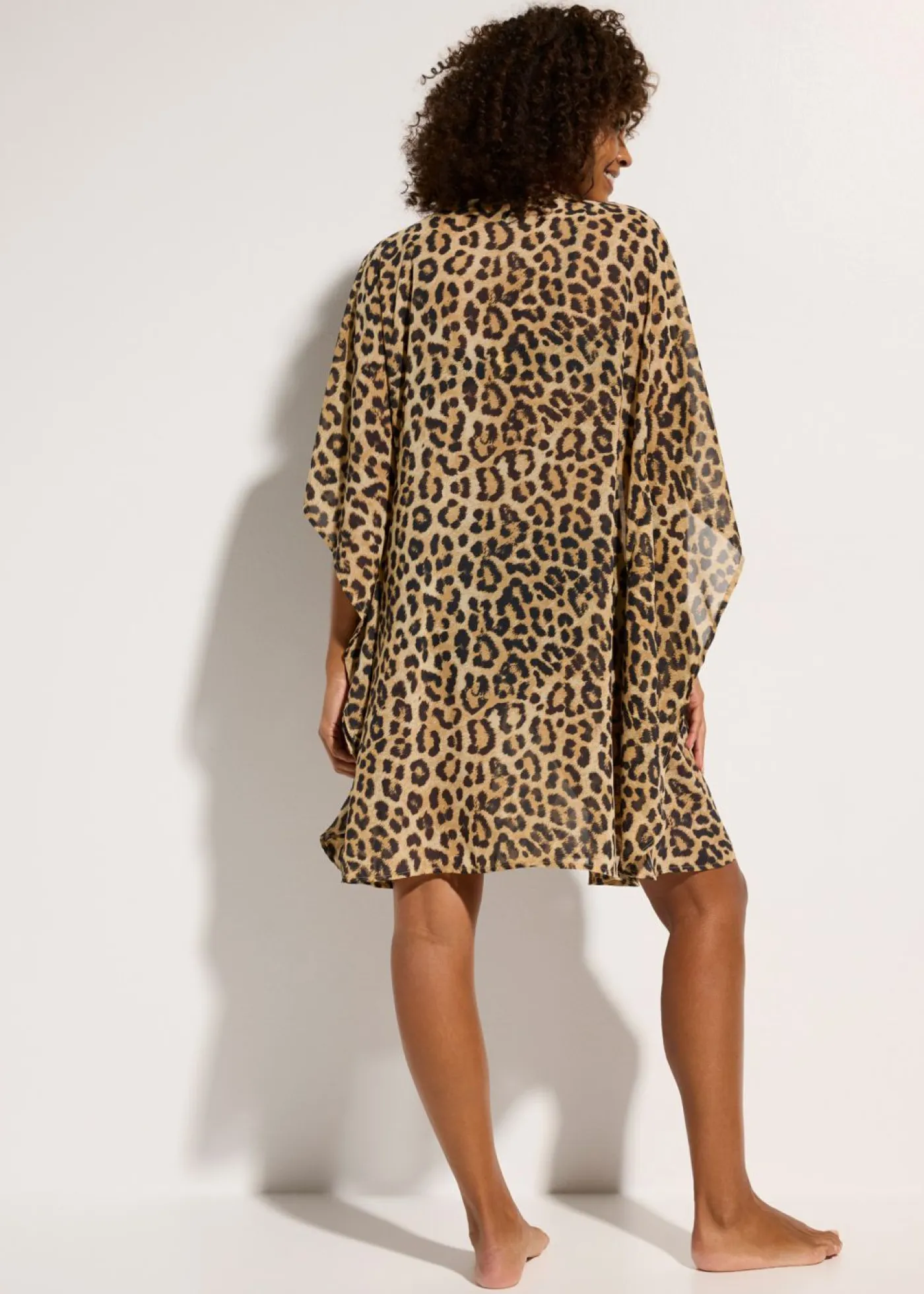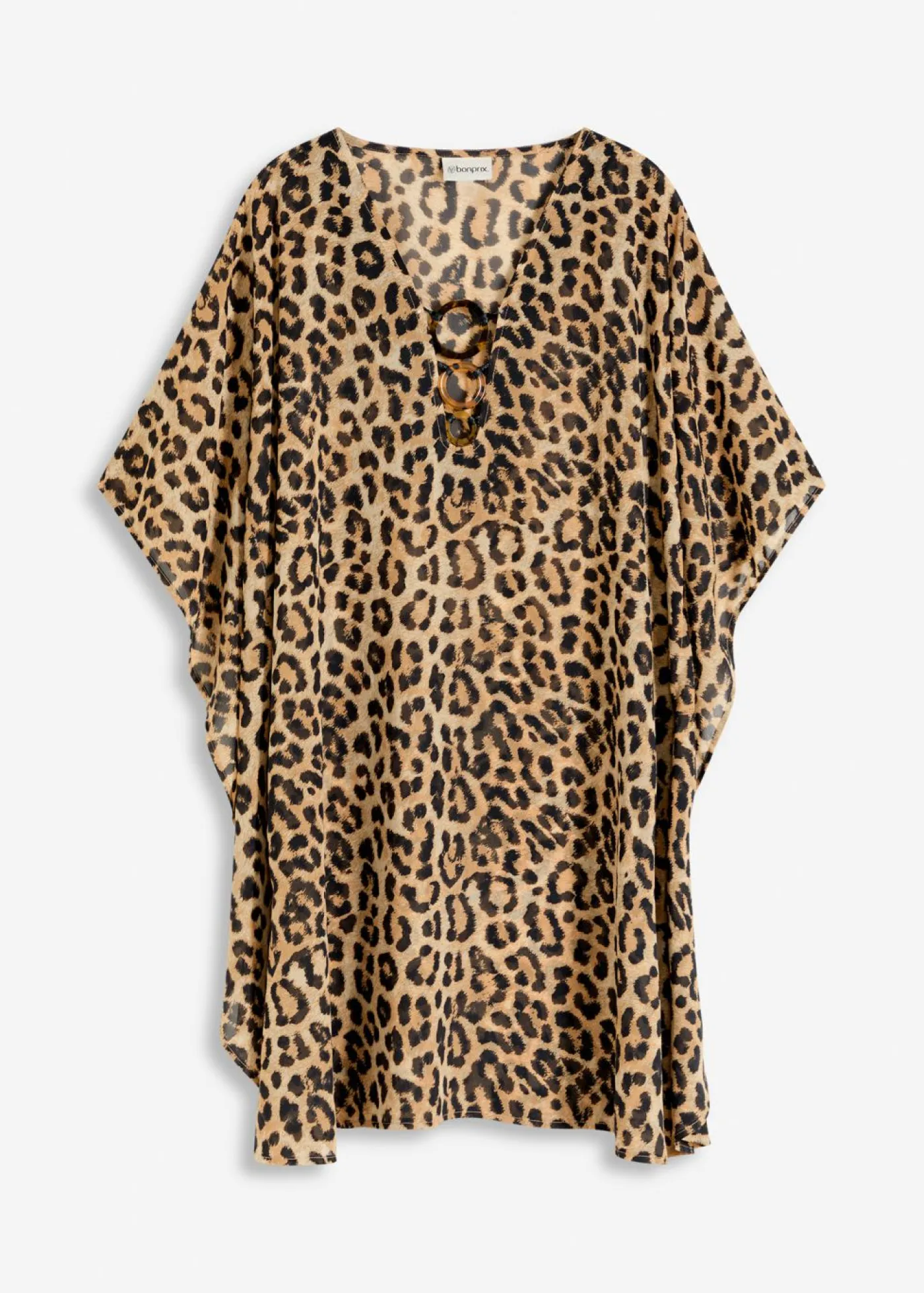 Túnica transparente con un moderno estampado de leopardo.