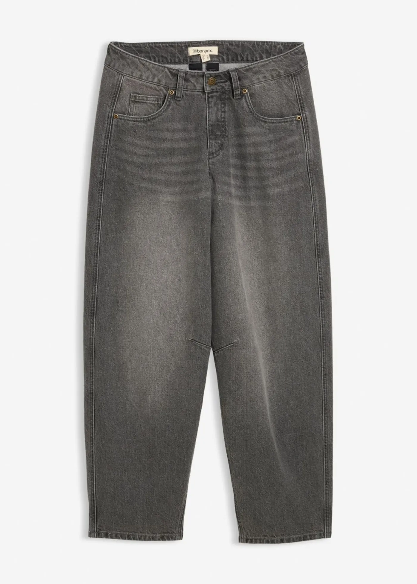 Vaqueros de 5 bolsillos confeccionados en un denim de algodón firme que se siente un poco rígido al principio y se vuelve más suave y suelto con el uso frecuente. Corte holgado con pernera voluminosa y redondeada desde la cadera hasta el muslo y corte cónico hacia abajo. Cintura de talle medio.