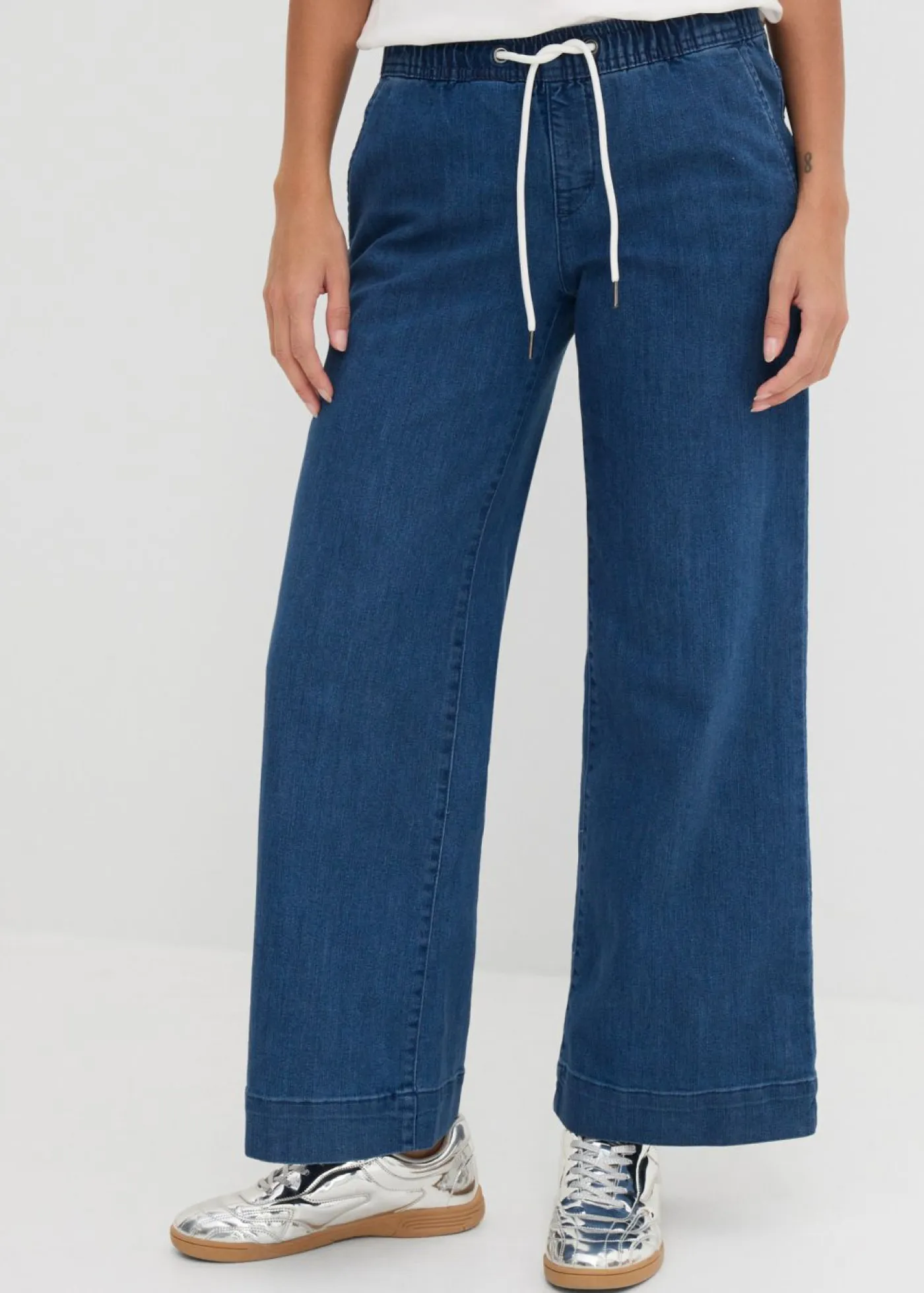 Vaqueros elásticos anchos sin cierre con un cinturón. Largo de aprox. 78,5 cm en talla 42. Se puede lavar a máquina.