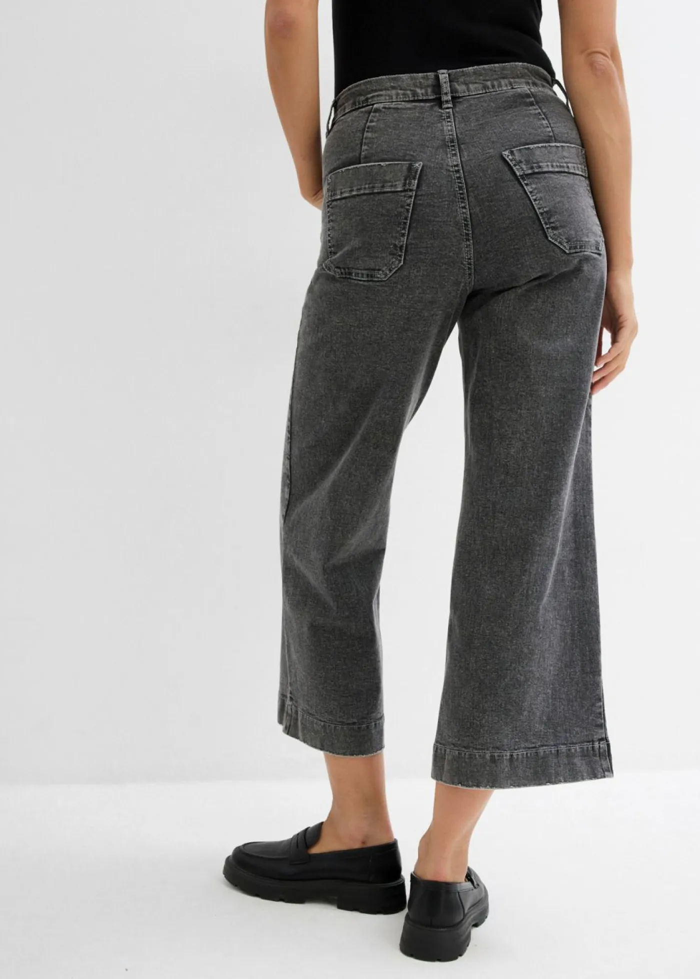 Vaqueros acortados con pernera ancha. Largo interior de la pierna de aprox. 64,5 cm en talla 42. Se puede lavar a máquina.