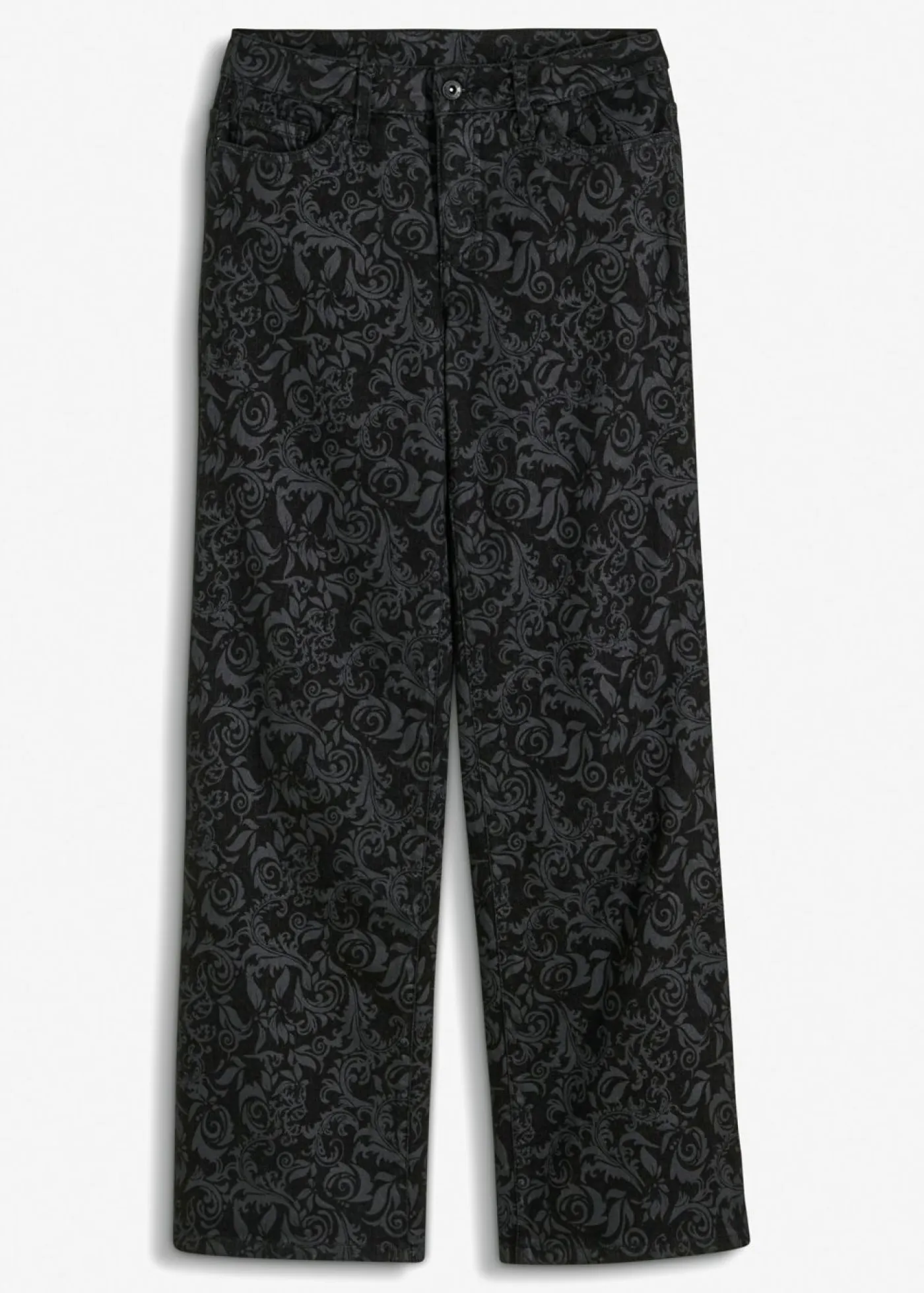 Vaqueros de pierna ancha y cintura media con estampado brillante, Largo. regular