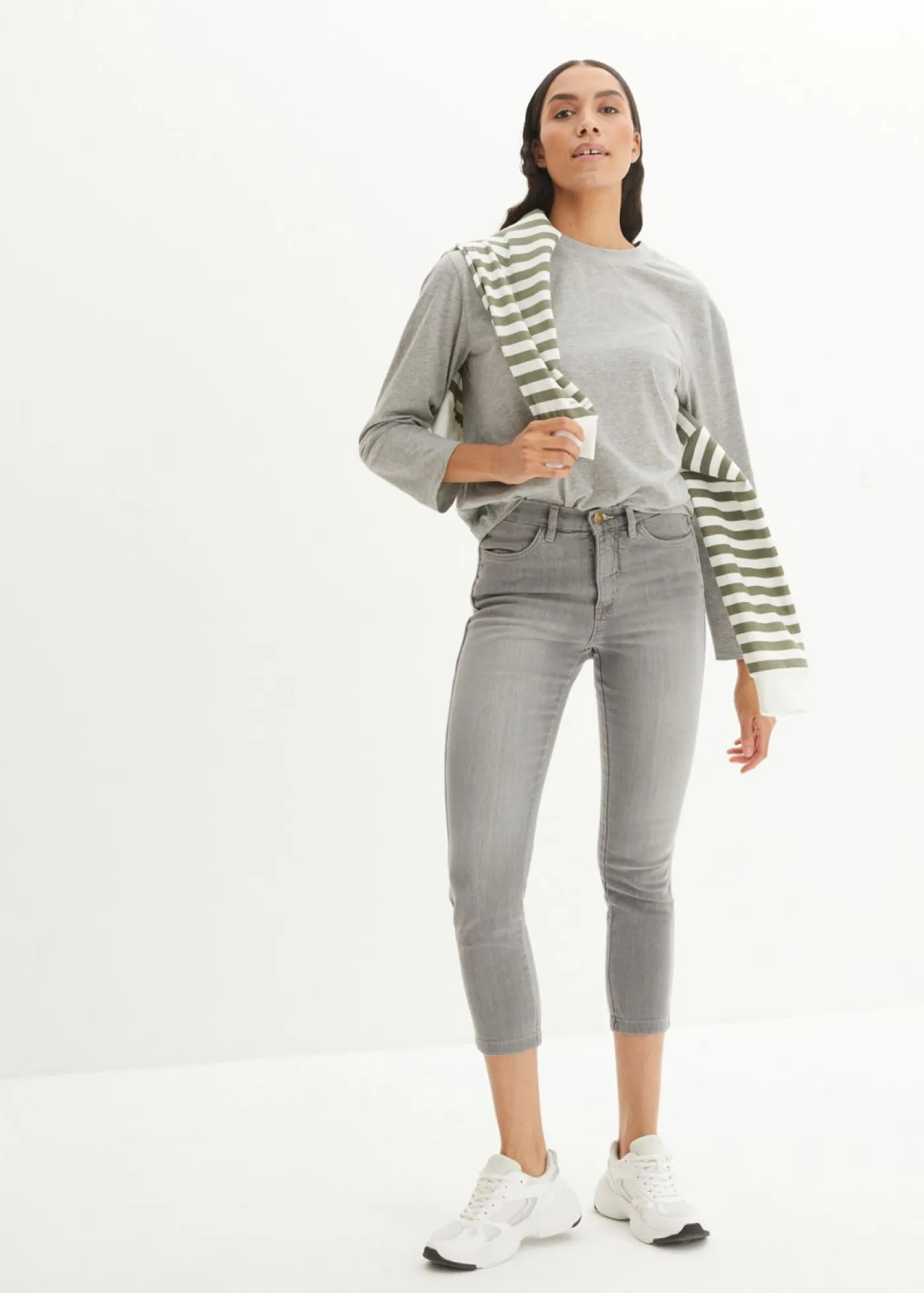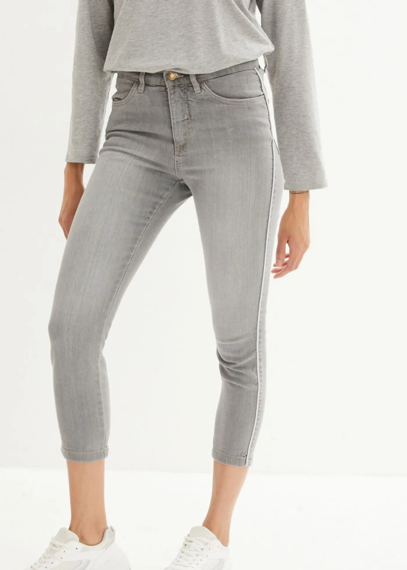 Vaqueros elásticos cómodos con largo capri y corte pitillo, Largo. regular