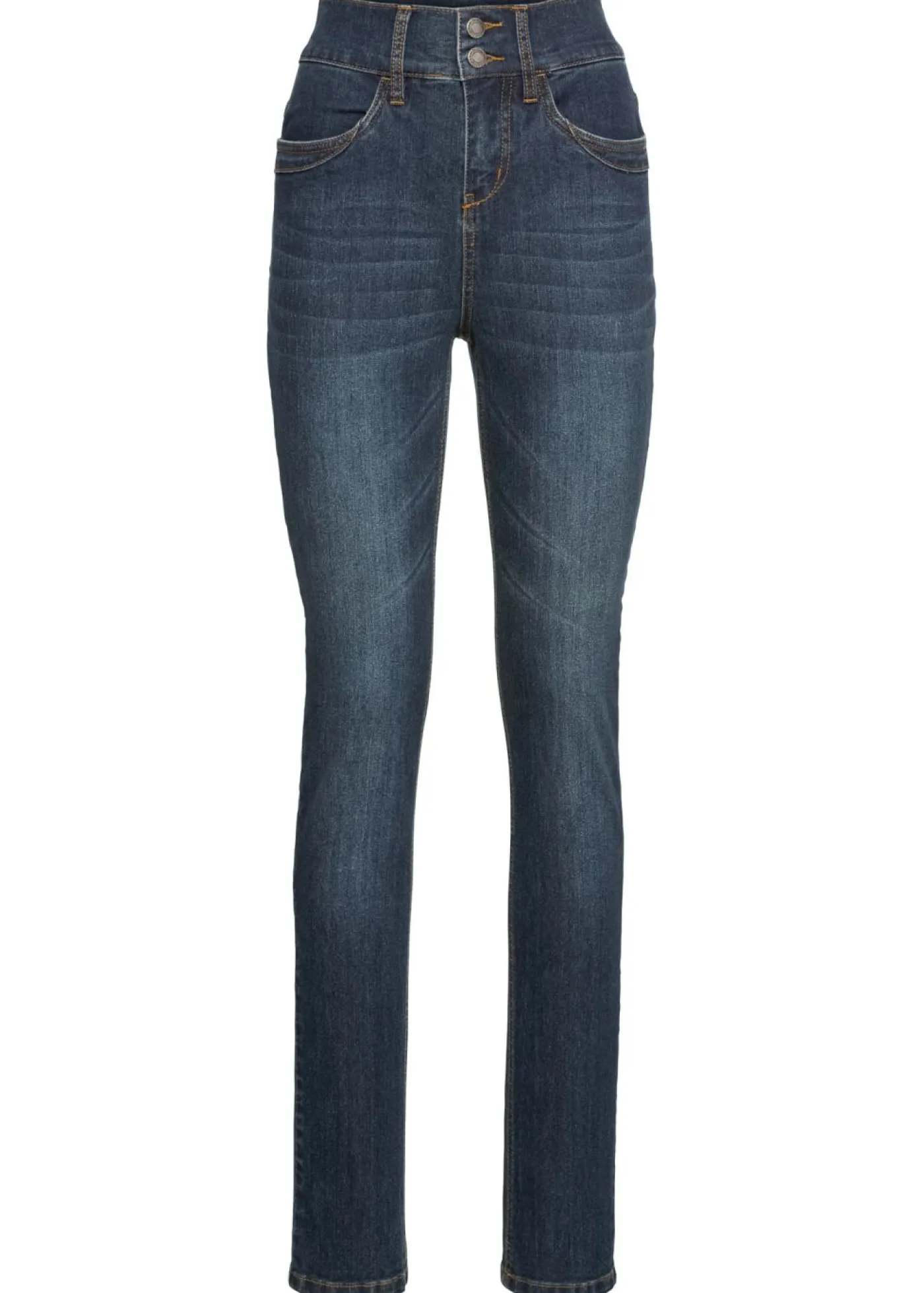 Vaqueros elásticos versátiles con cintura alta y bolsillos. Largo interior de la pierna de aprox. 79 cm en talla 42 (talla normal) y aprox. 74 cm (talla corta). Se puede lavar a máquina.
