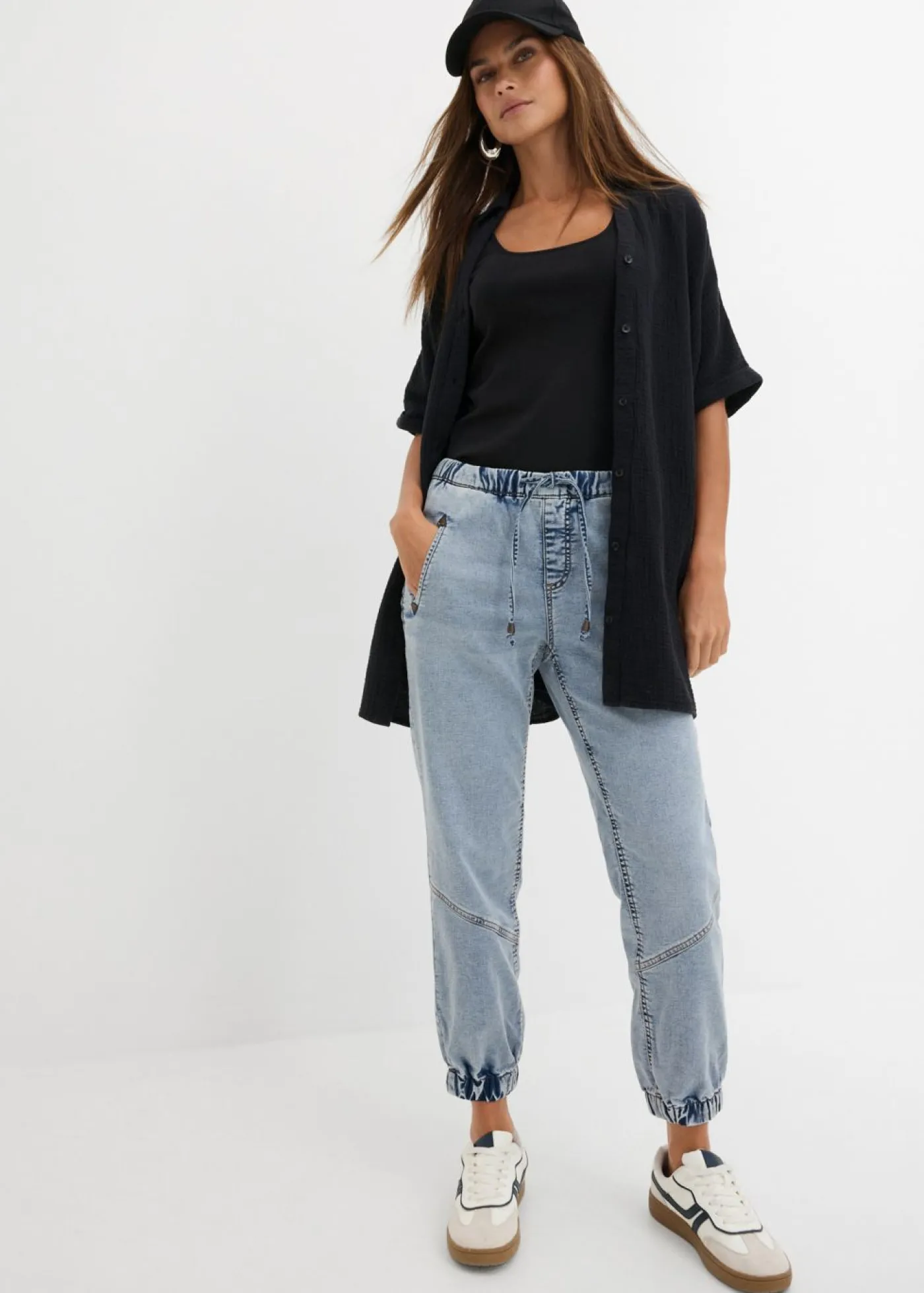 Vaqueros elásticos deportivos de talle medio, Largo regular