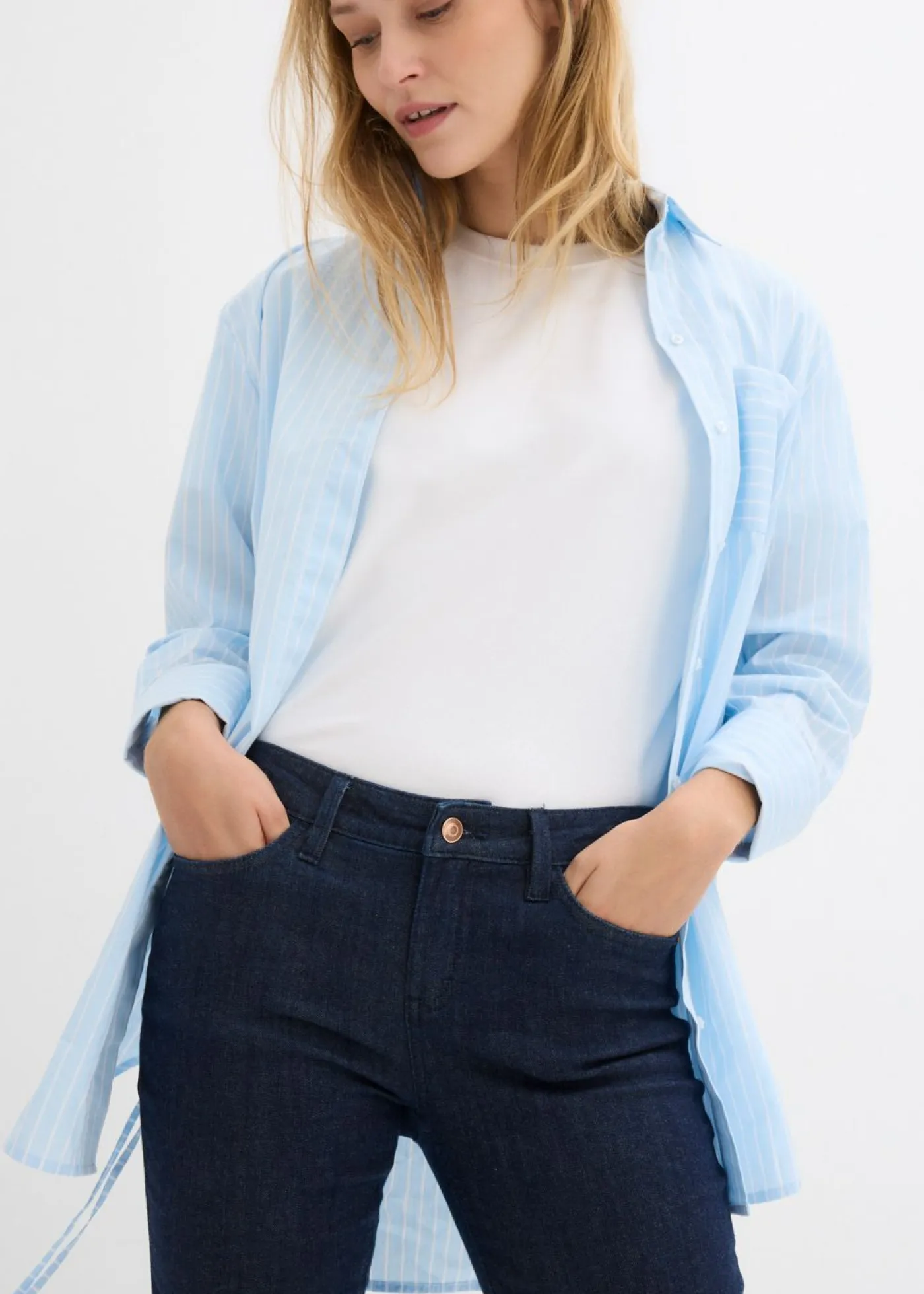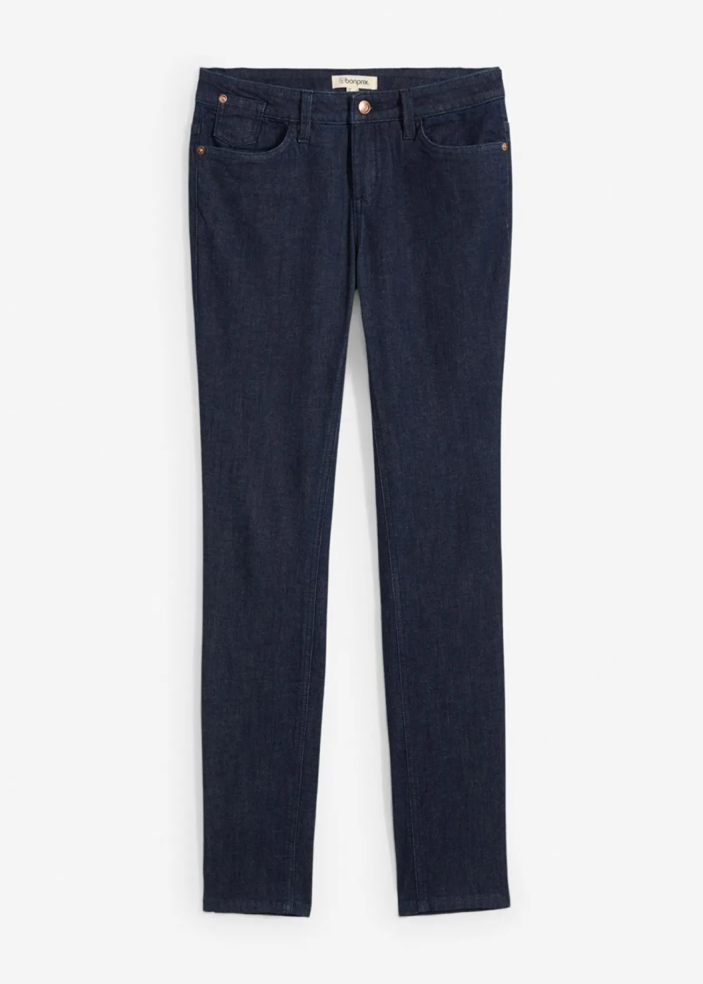 Vaqueros pitillo de algodón orgánico con talle medio, Largo tall