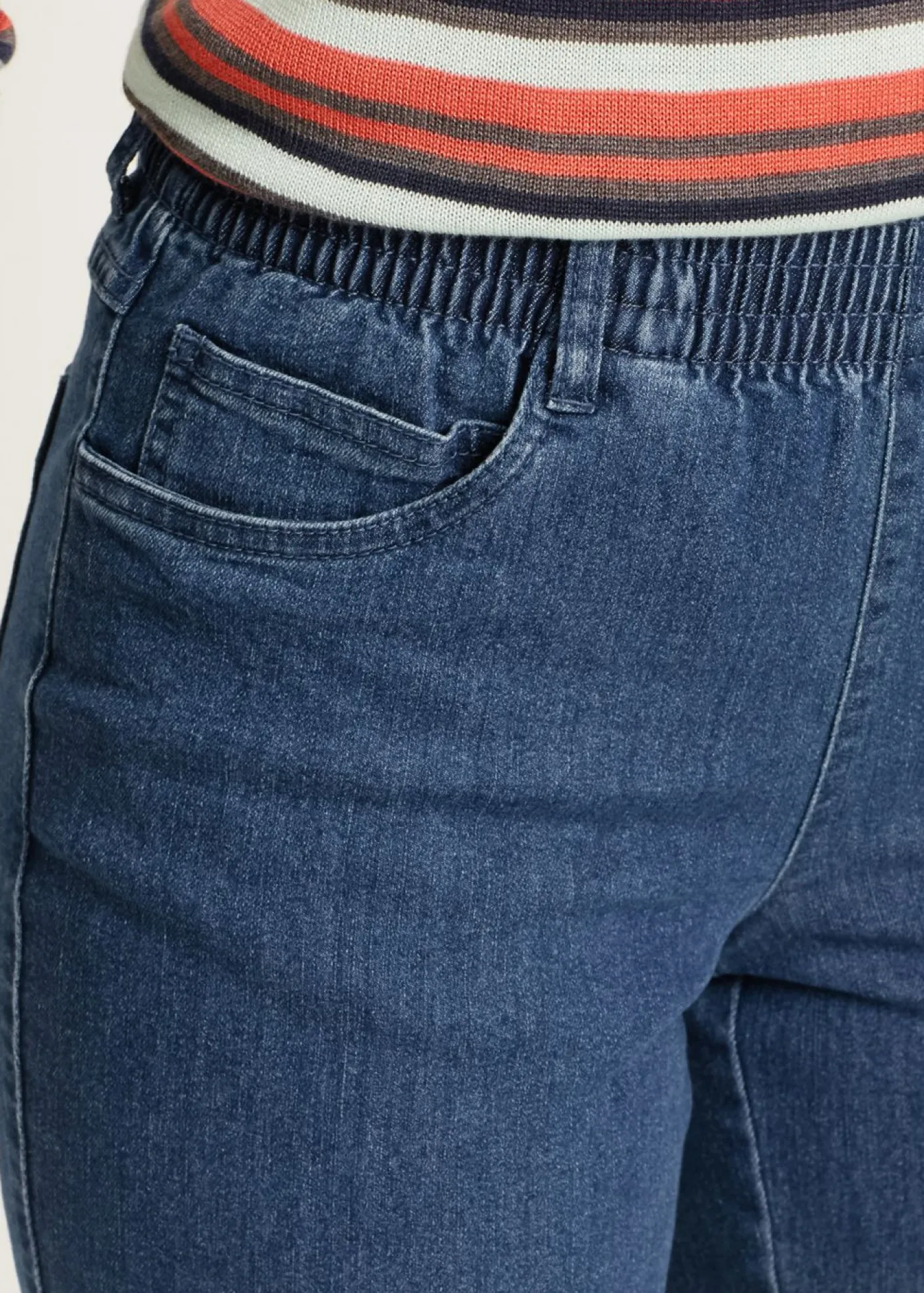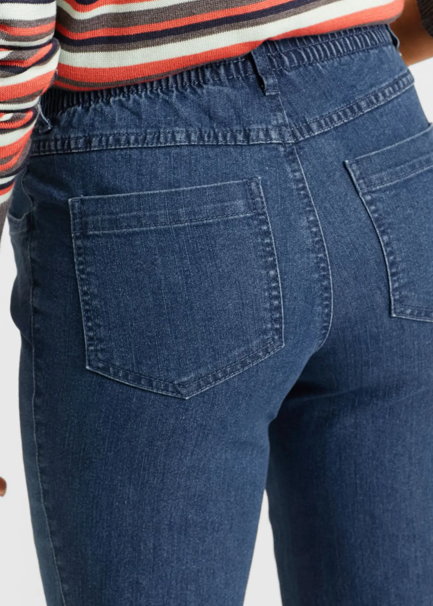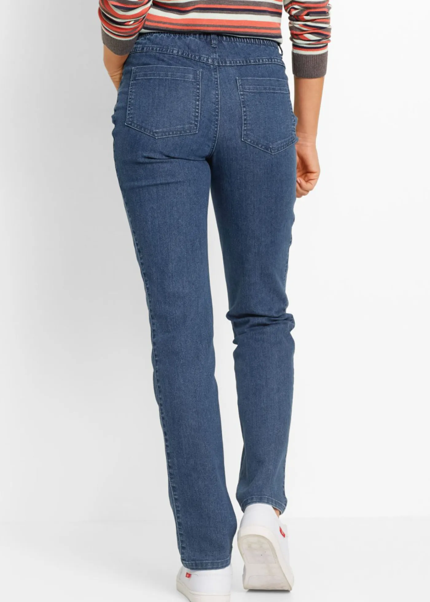 Cómodo pantalón elástico con cintura elástica y pernera recta. Se puede lavar a máquina.
