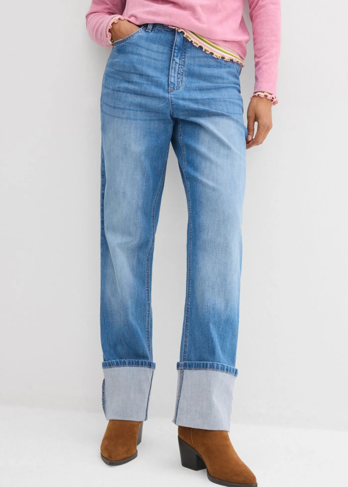 Vaqueros rectos holgados de talle alto, Largo. petite