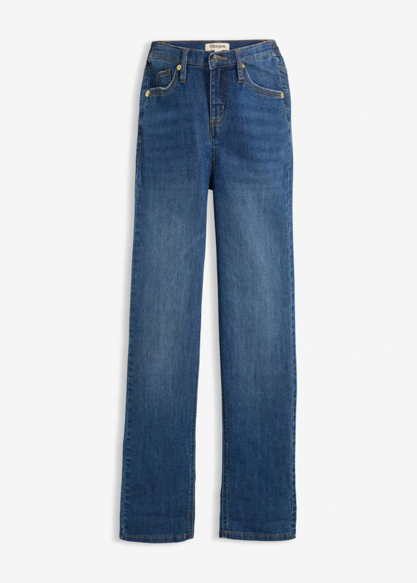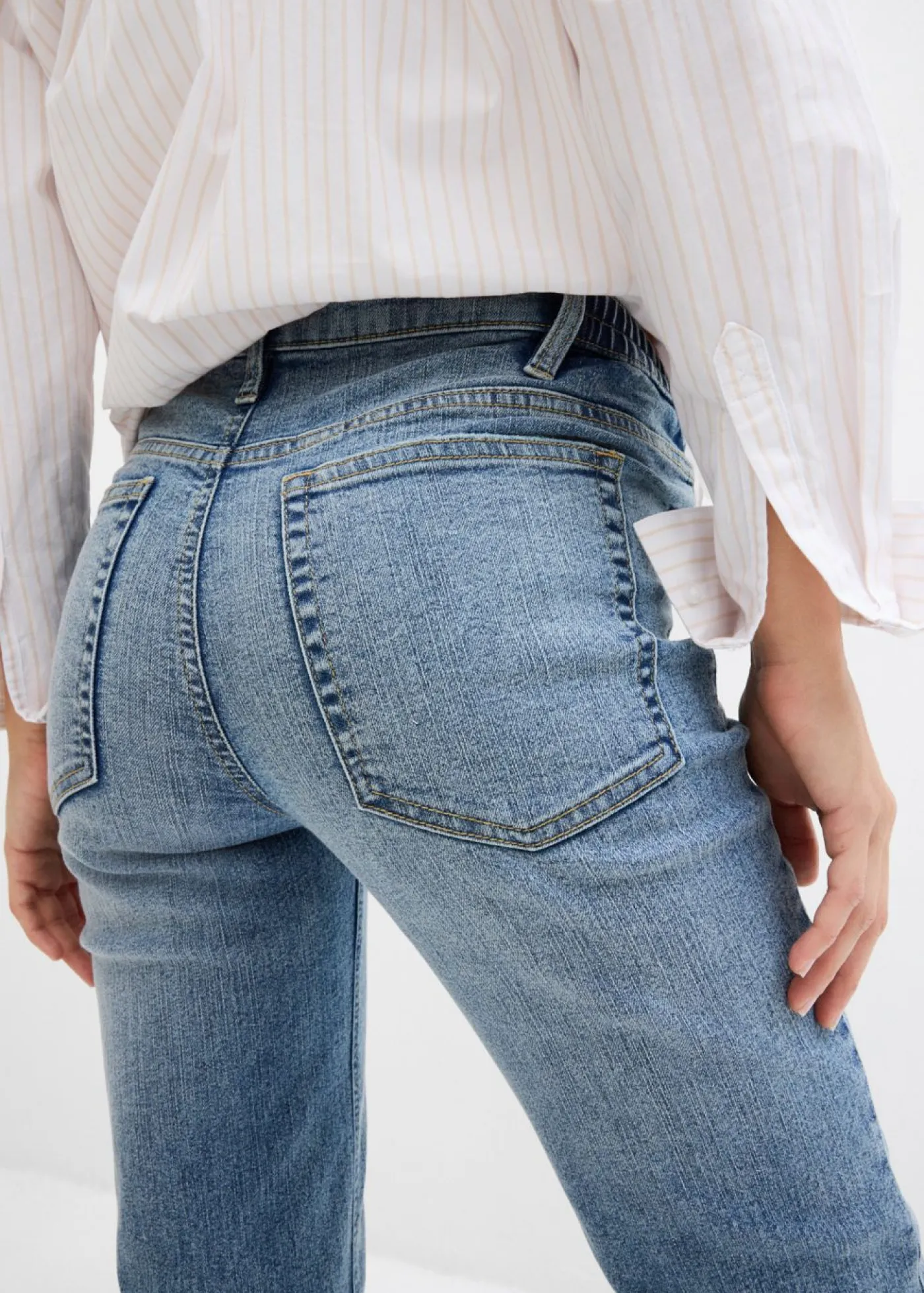 Cómodos vaqueros premamá sin banda para el vientre con perneras rectas. Los vaqueros elásticos de tejido vaquero con algodón orgánico garantizan una gran comodidad durante y después del embarazo La cintura baja integra una goma elástica oculta y ajustable, por lo que los vaqueros se pueden llevar tanto durante como después del embarazo. Estos vaqueros premamá presentan perneras rectas y holgadas.