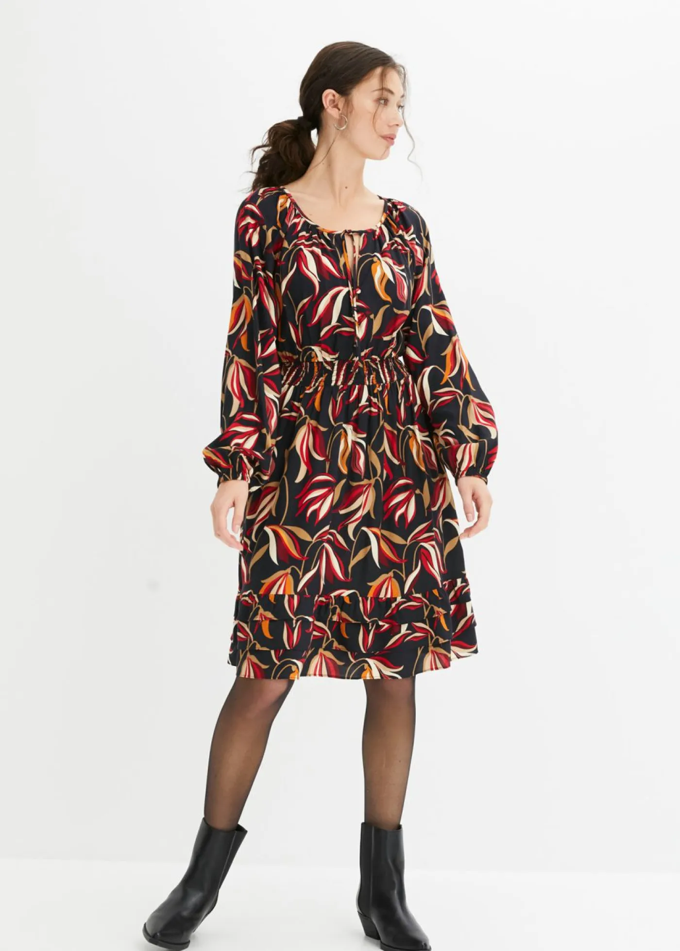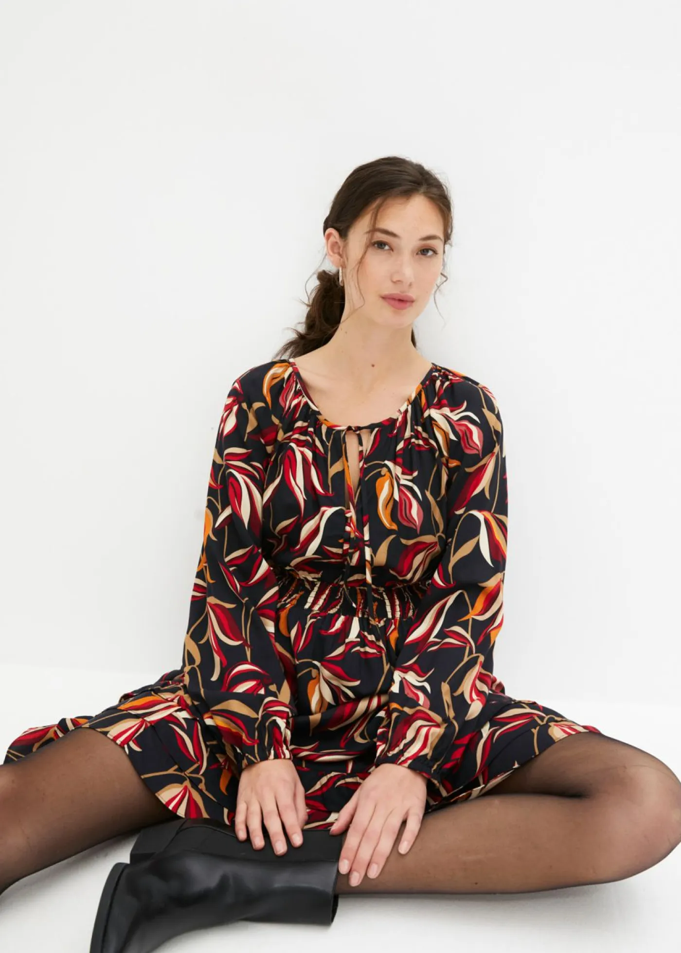 Vestido de viscosa que enfatiza la cintura y crea efectos cubridor.