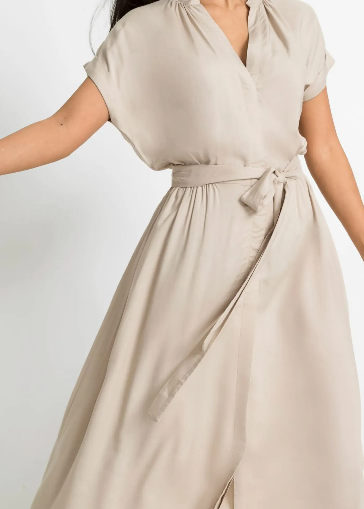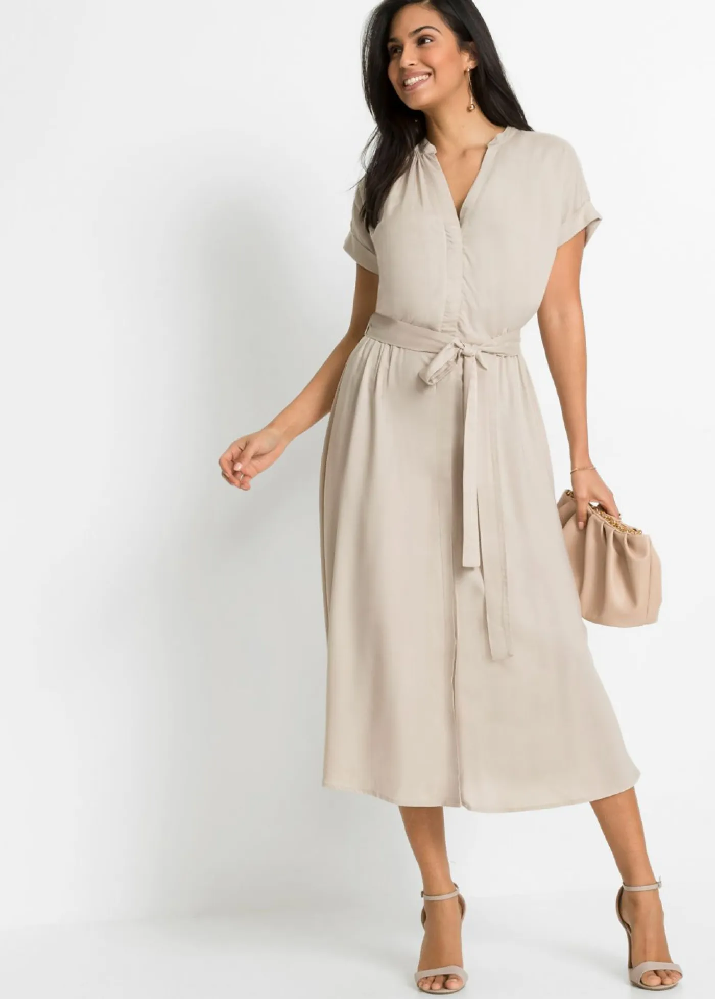Moderno vestido camisero con cordón alrededor de la cintura. Largo de aprox. 126 cm en talla 38.