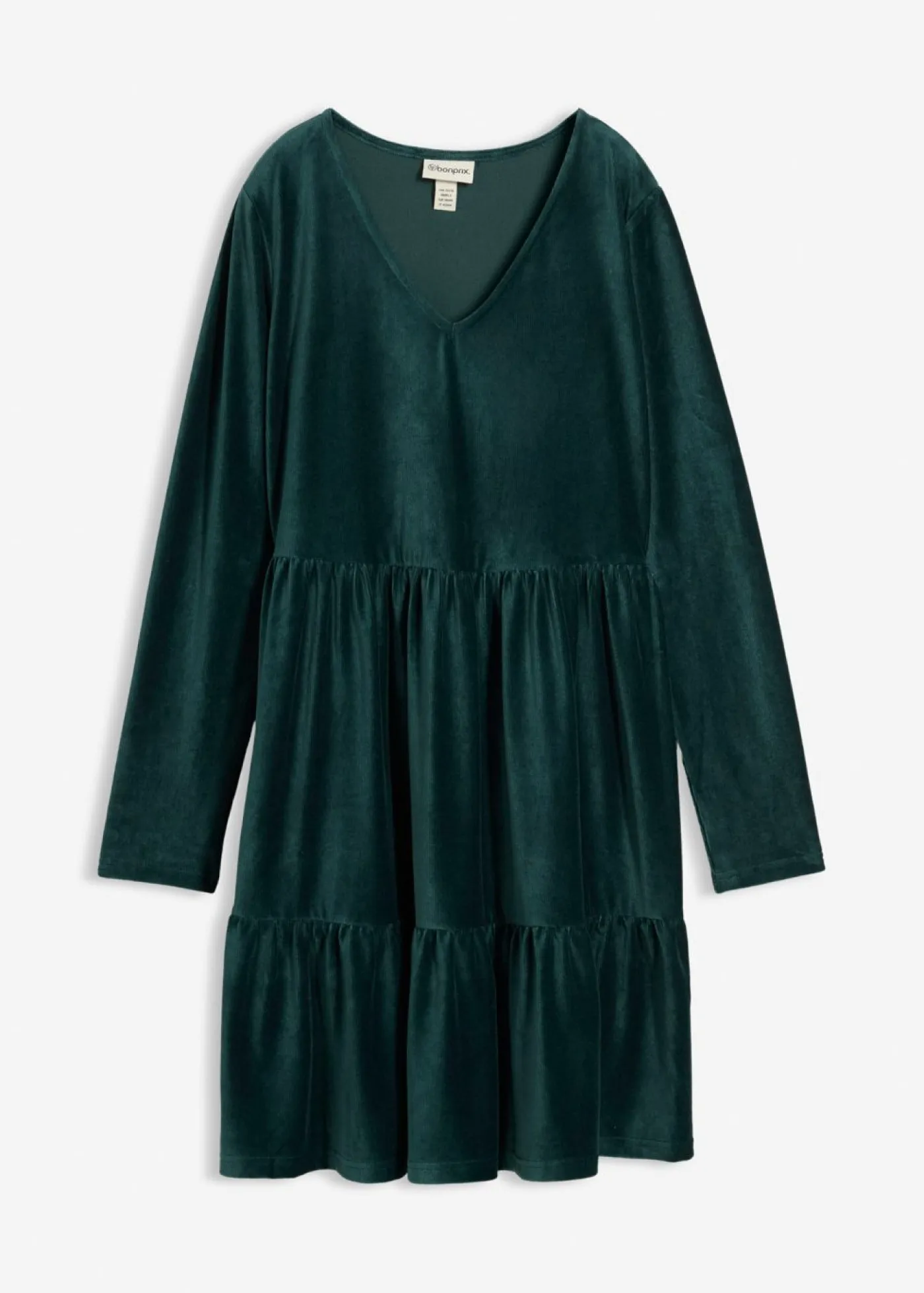 Divertido vestido de terciopelo con fruncidos. Largo de aprox. 96 cm en talla 40/42. Se puede lavar a máquina.