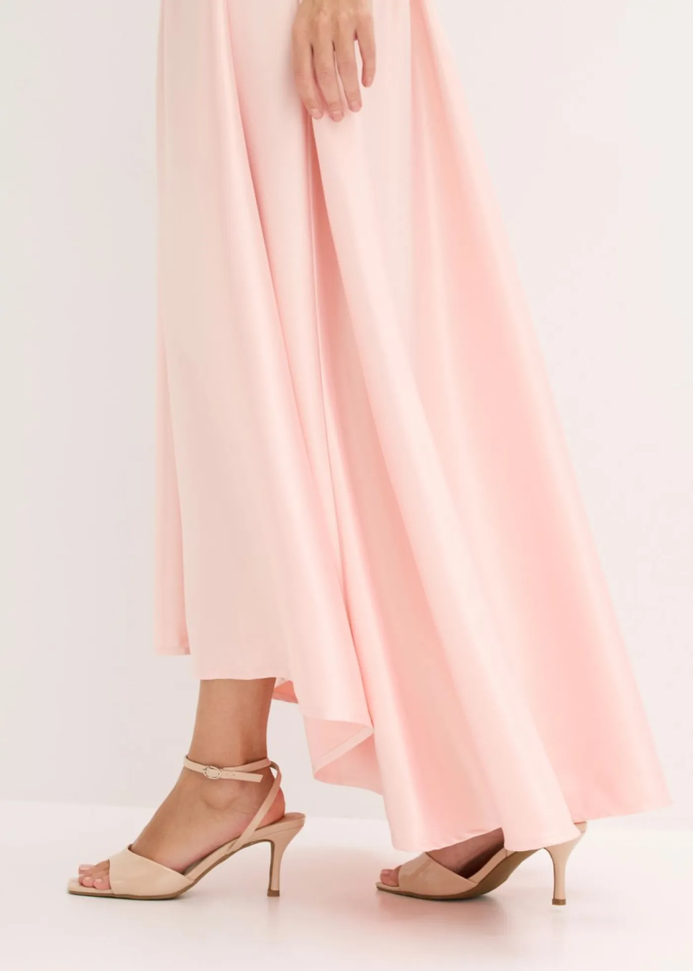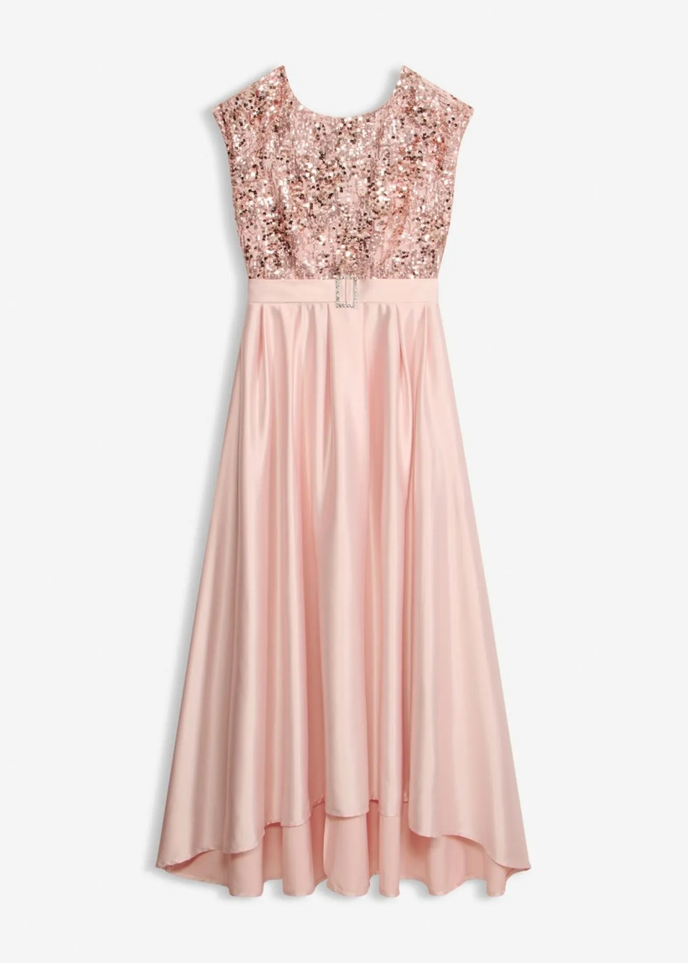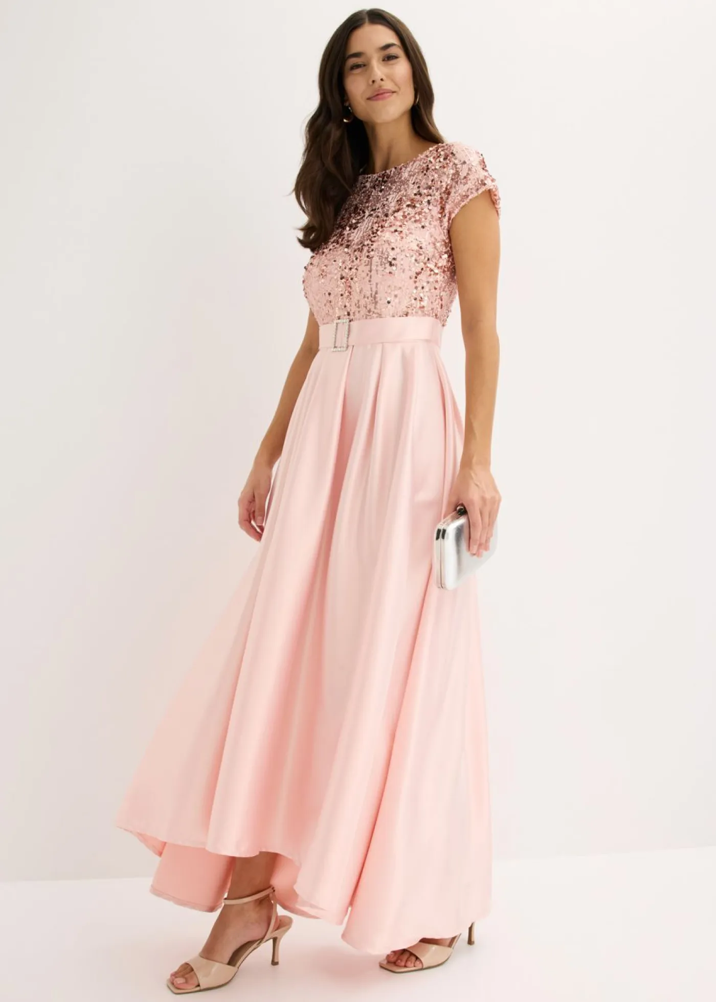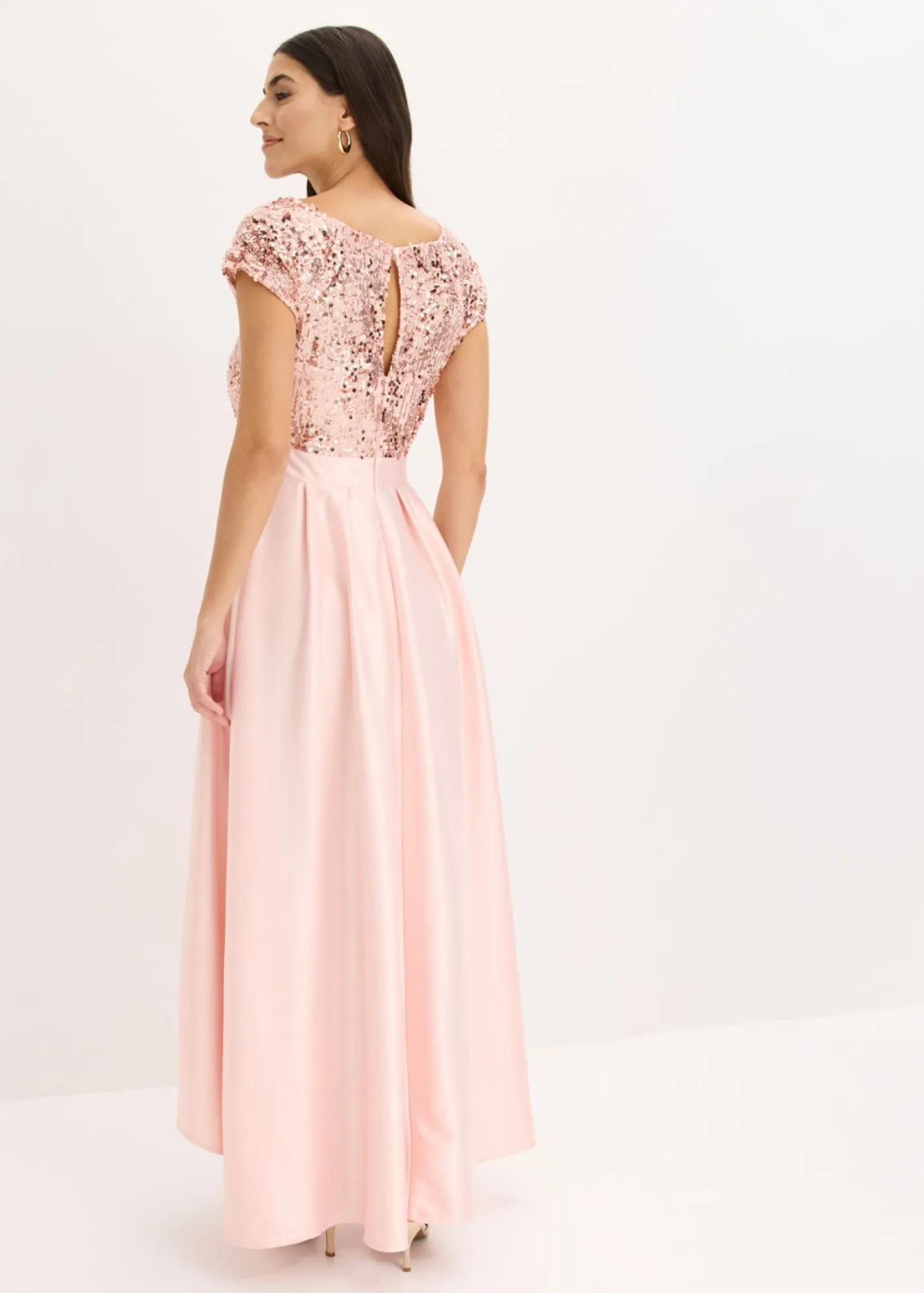 Vestido de noche de satén brillante con lentejuelas, Largo regular