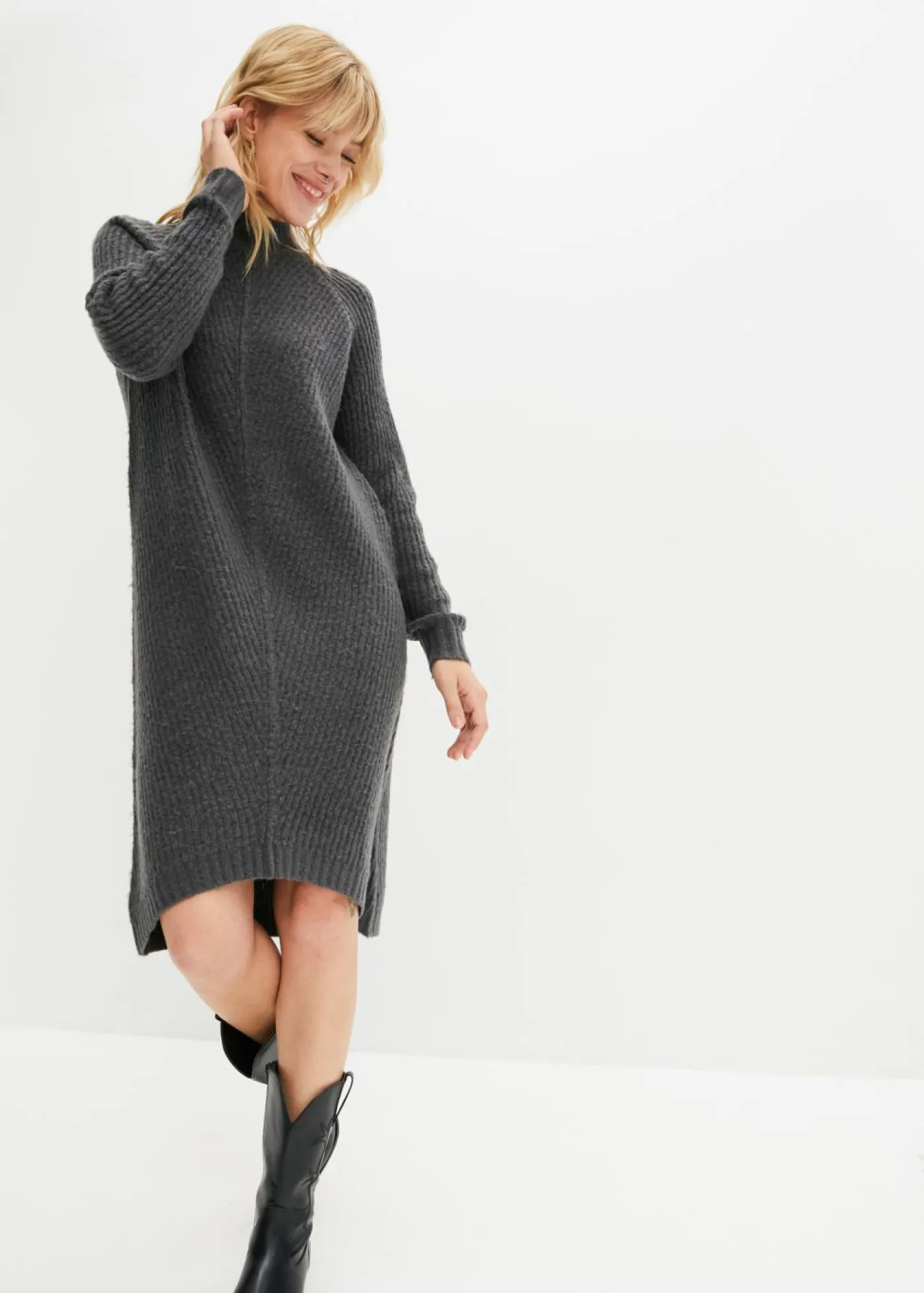 Vestido midi asimétrico de punto con corte cómodo. Largo de aprox. 100 cm en talla 40/42. Se puede lavar a máquina.