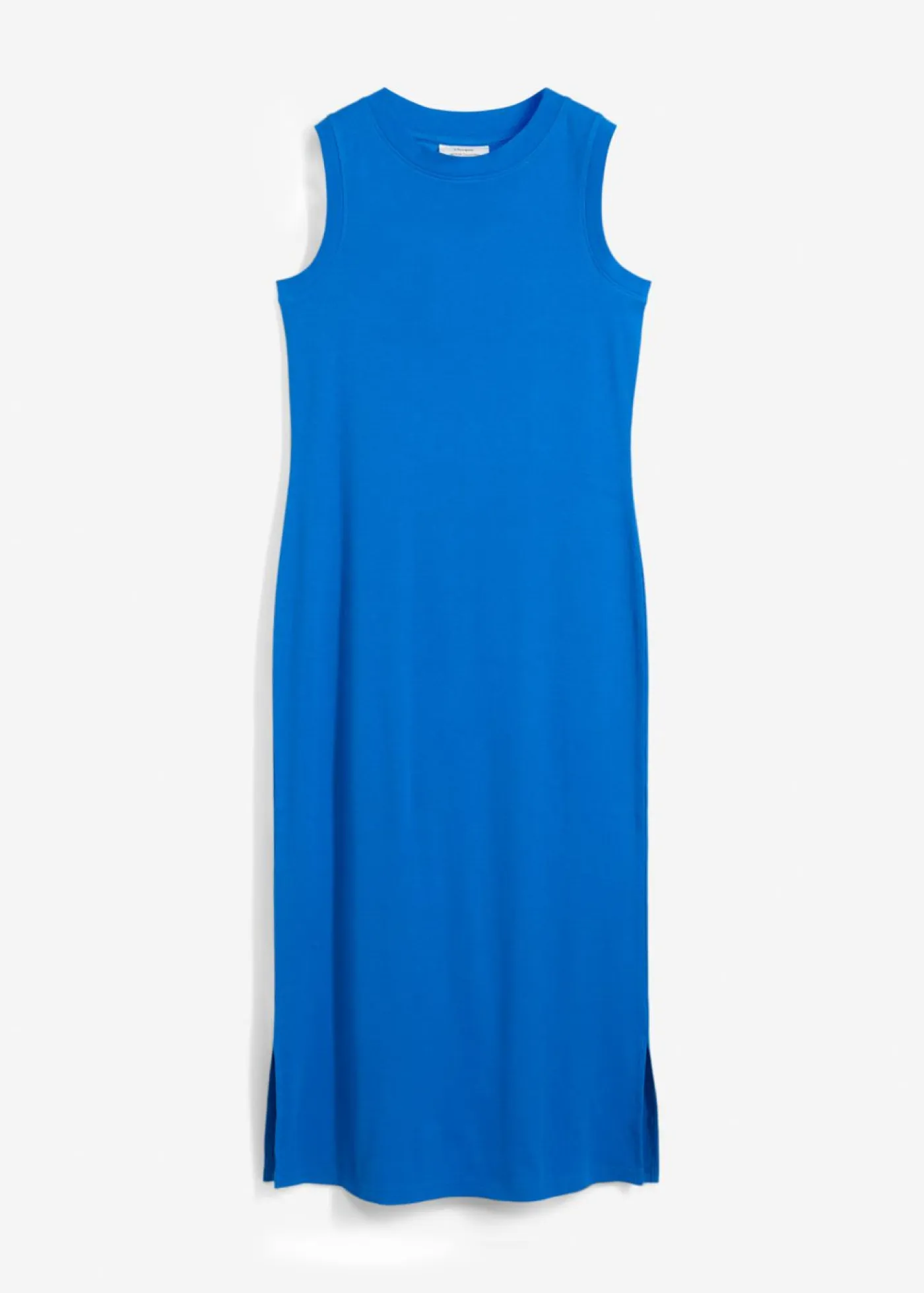 Vestido de punto con cuello redondo de canalé y abertura.