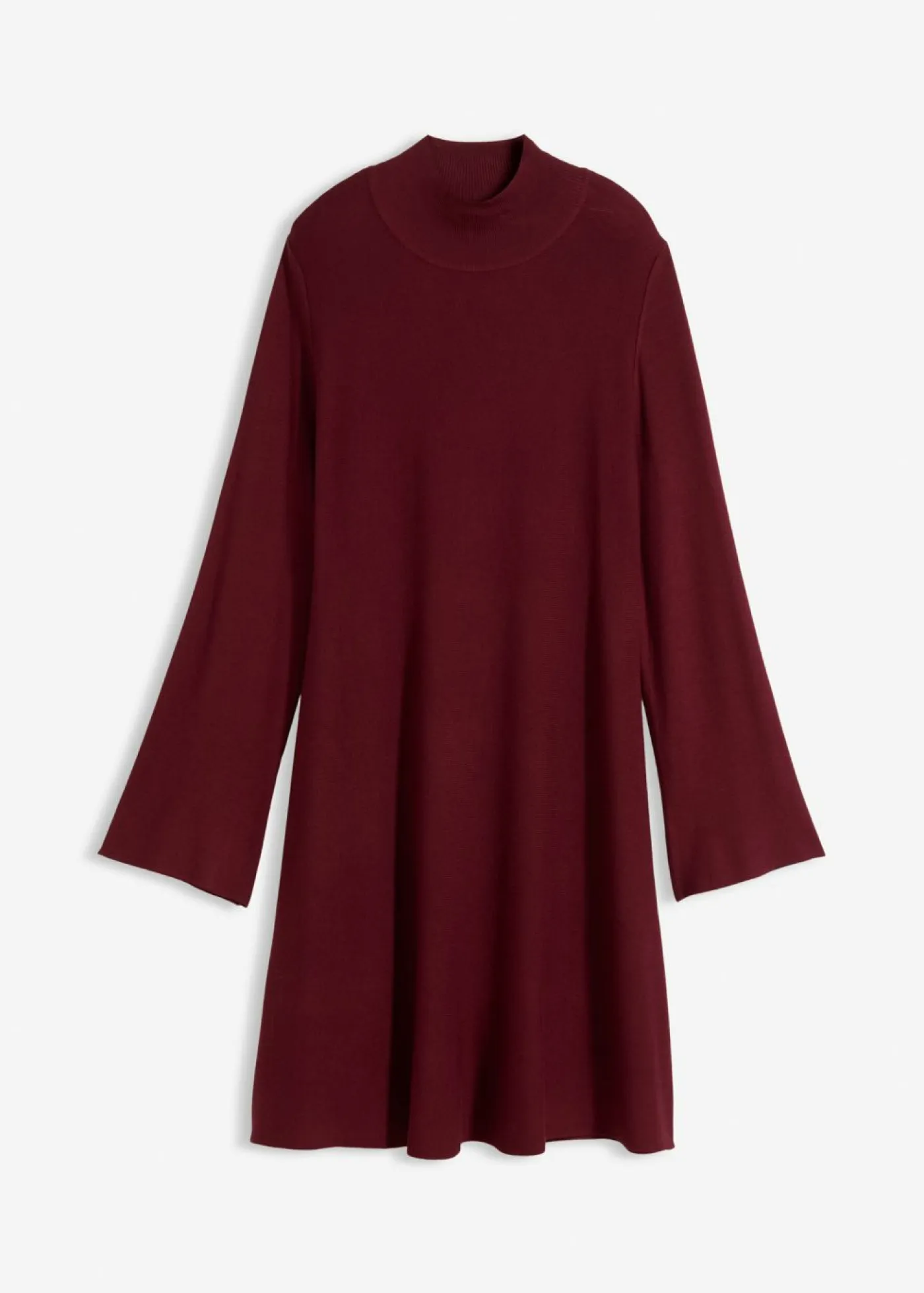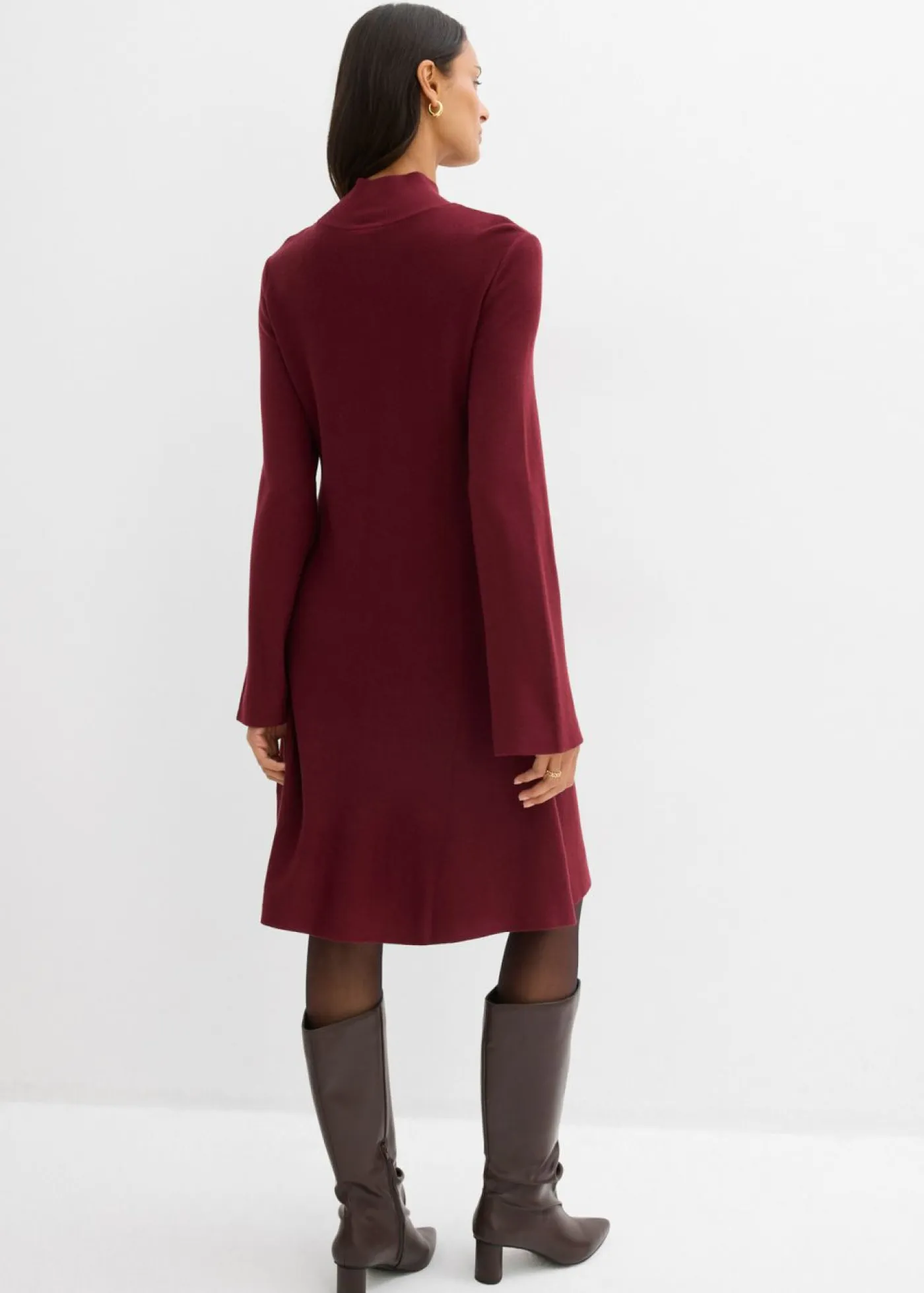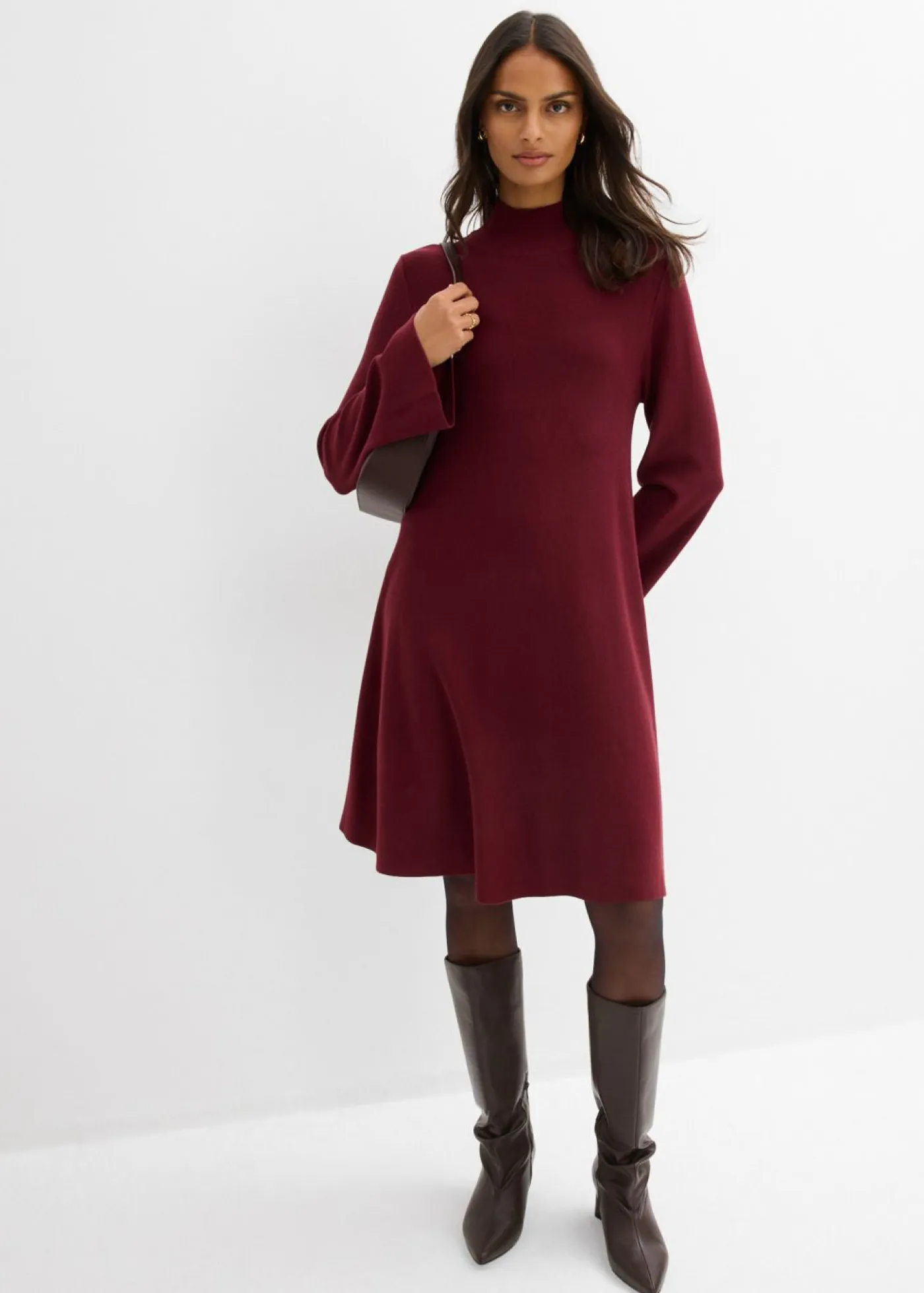 Vestido acampanado con cuello alto y dobladillo ancho.