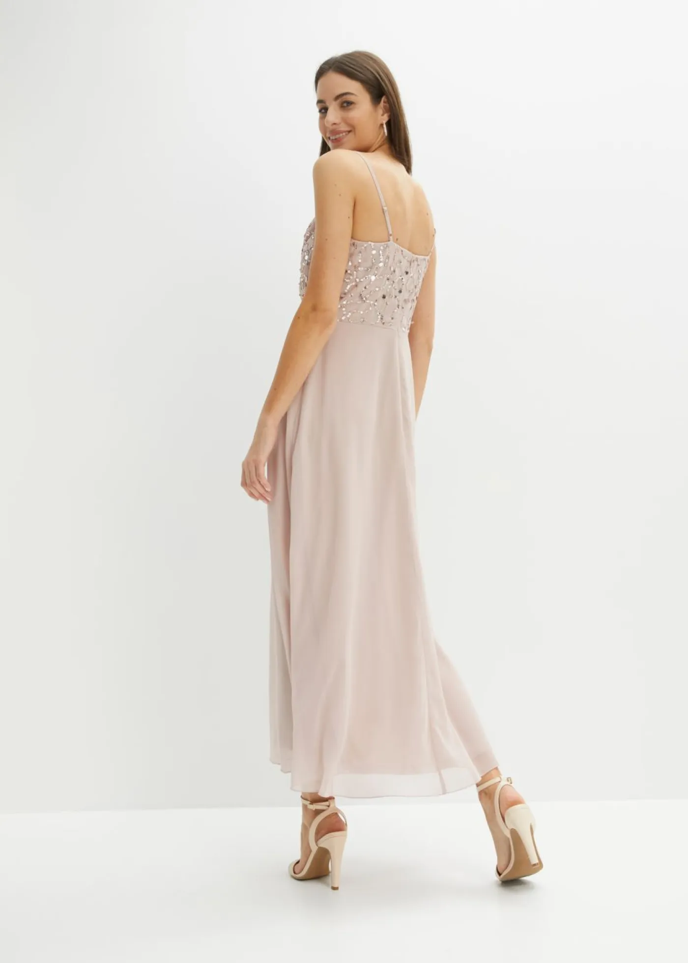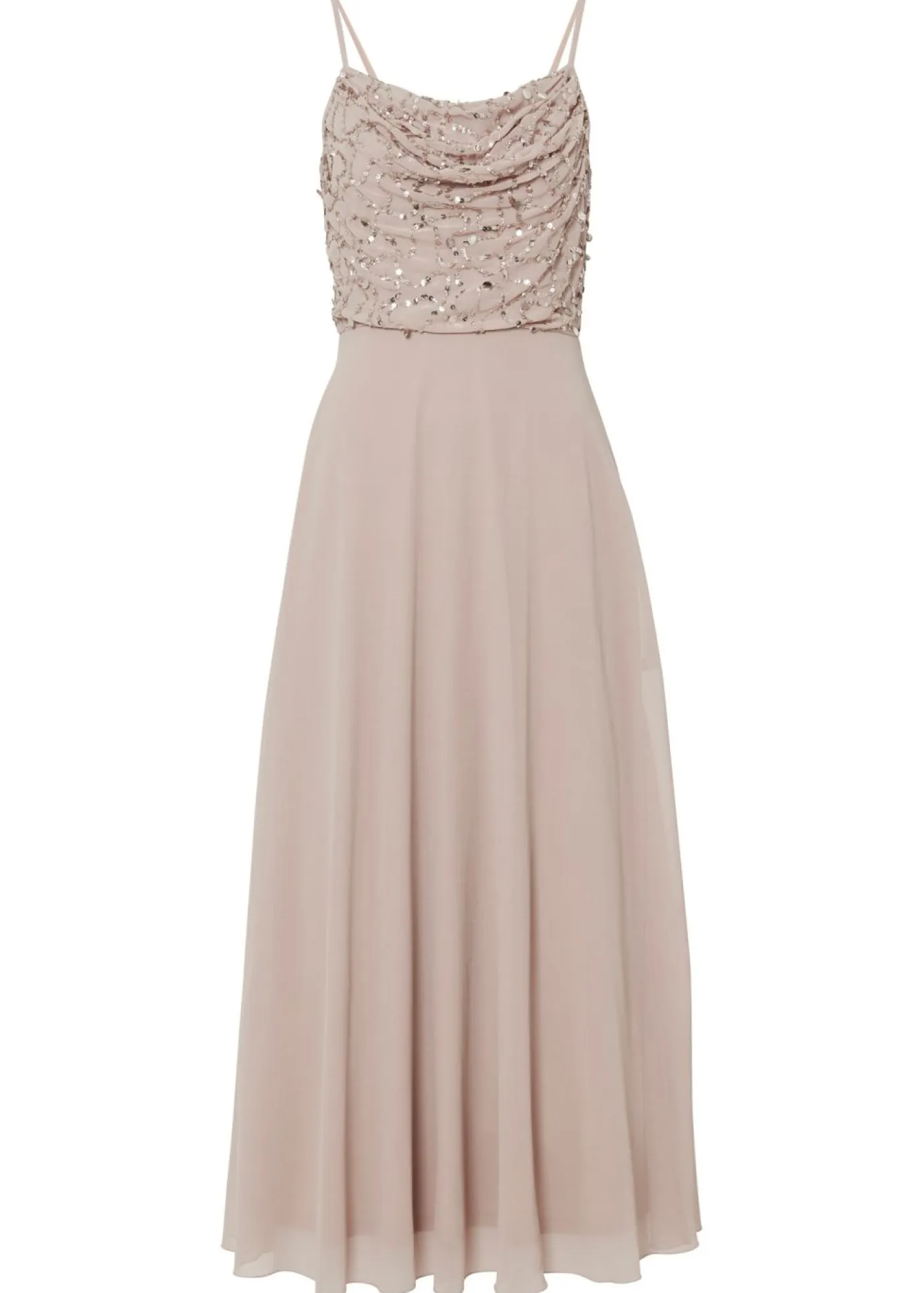 Vestido de tirantes con lentejuelas bordadas, Largo regular