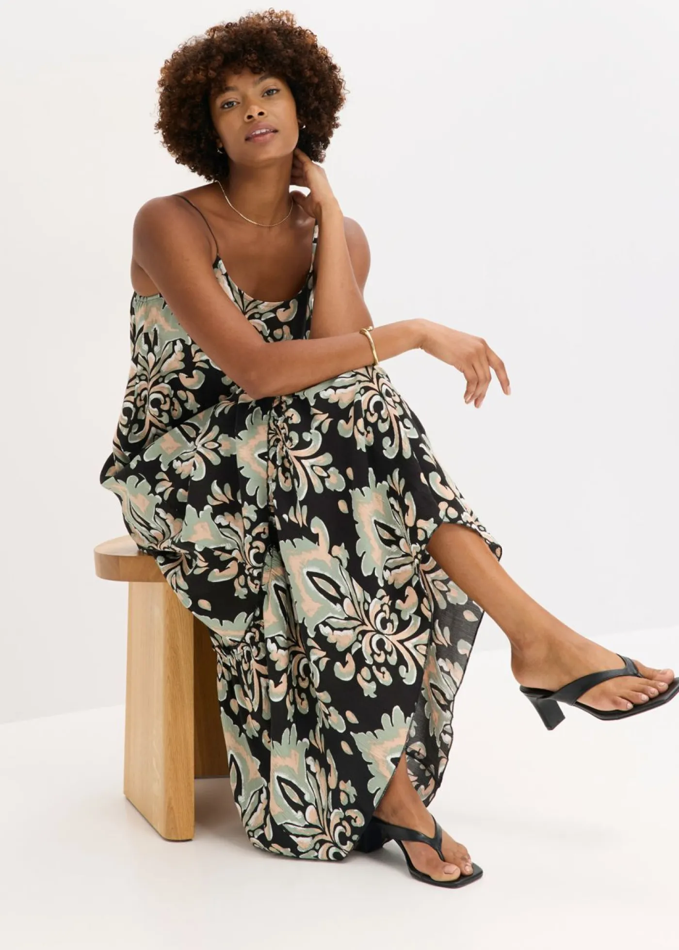 Vestido de tirantes de corte ancho y largo maxi de viscosa estructurada.