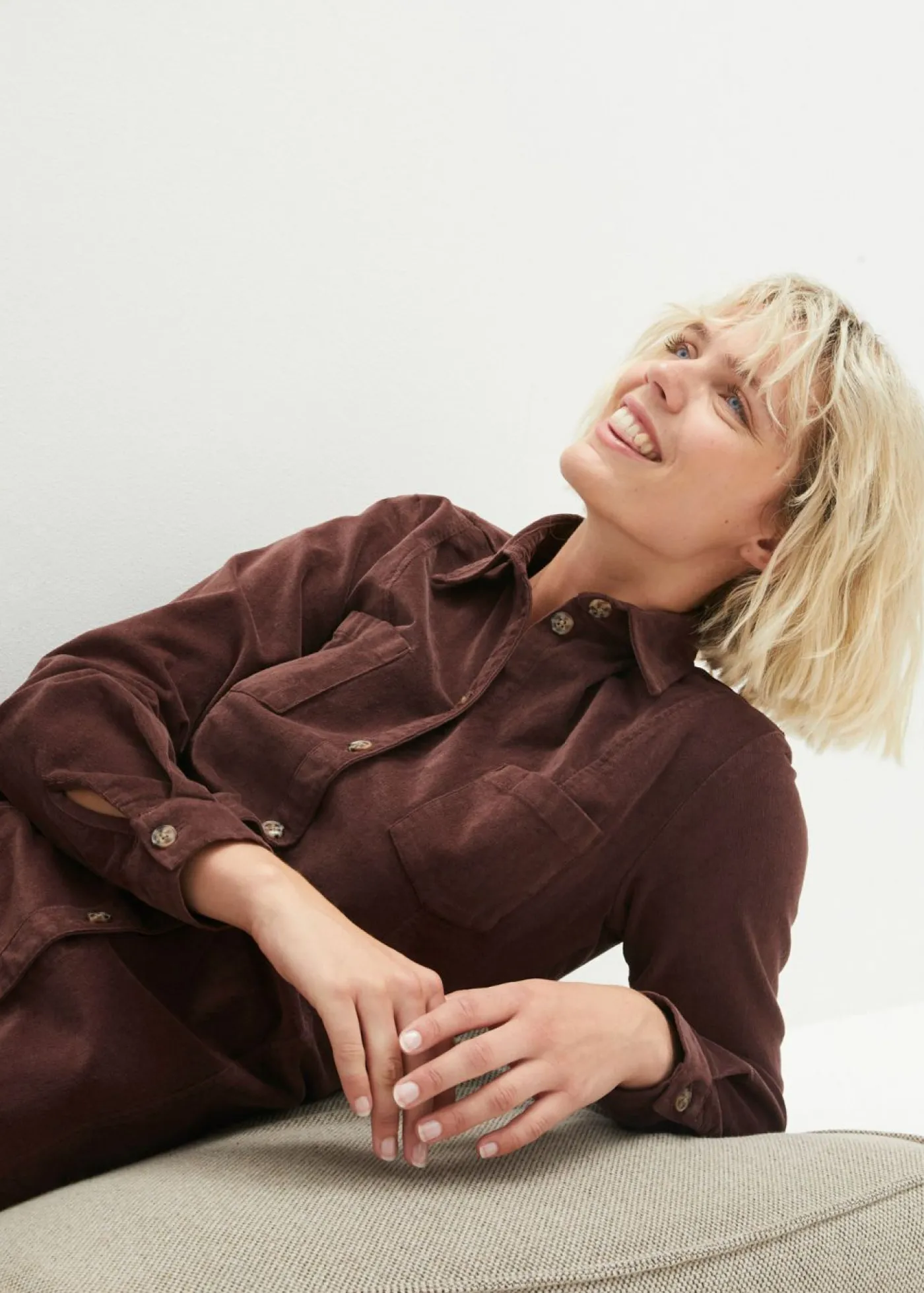 Moderno vestido elástico de pana. Largo de aprox. 96 cm en talla 42. Se puede lavar a máquina.