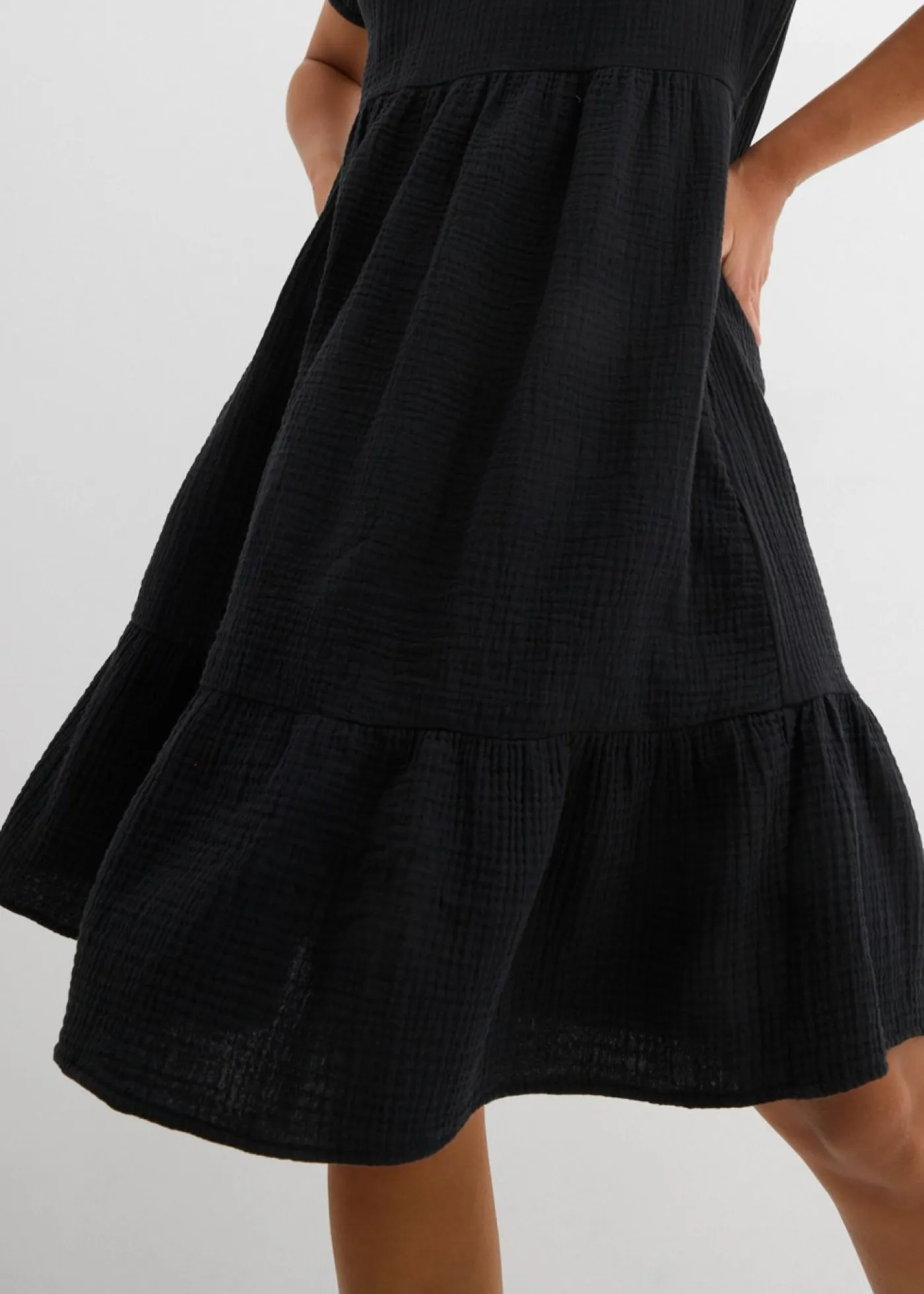 Vestido ancho de algodón con escote en V. Largo de aprox. 100 cm en talla 42. Se puede lavar a máquina.