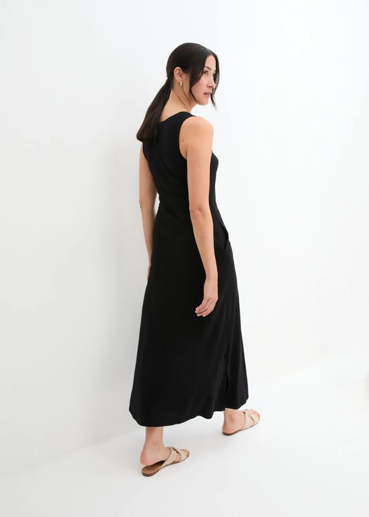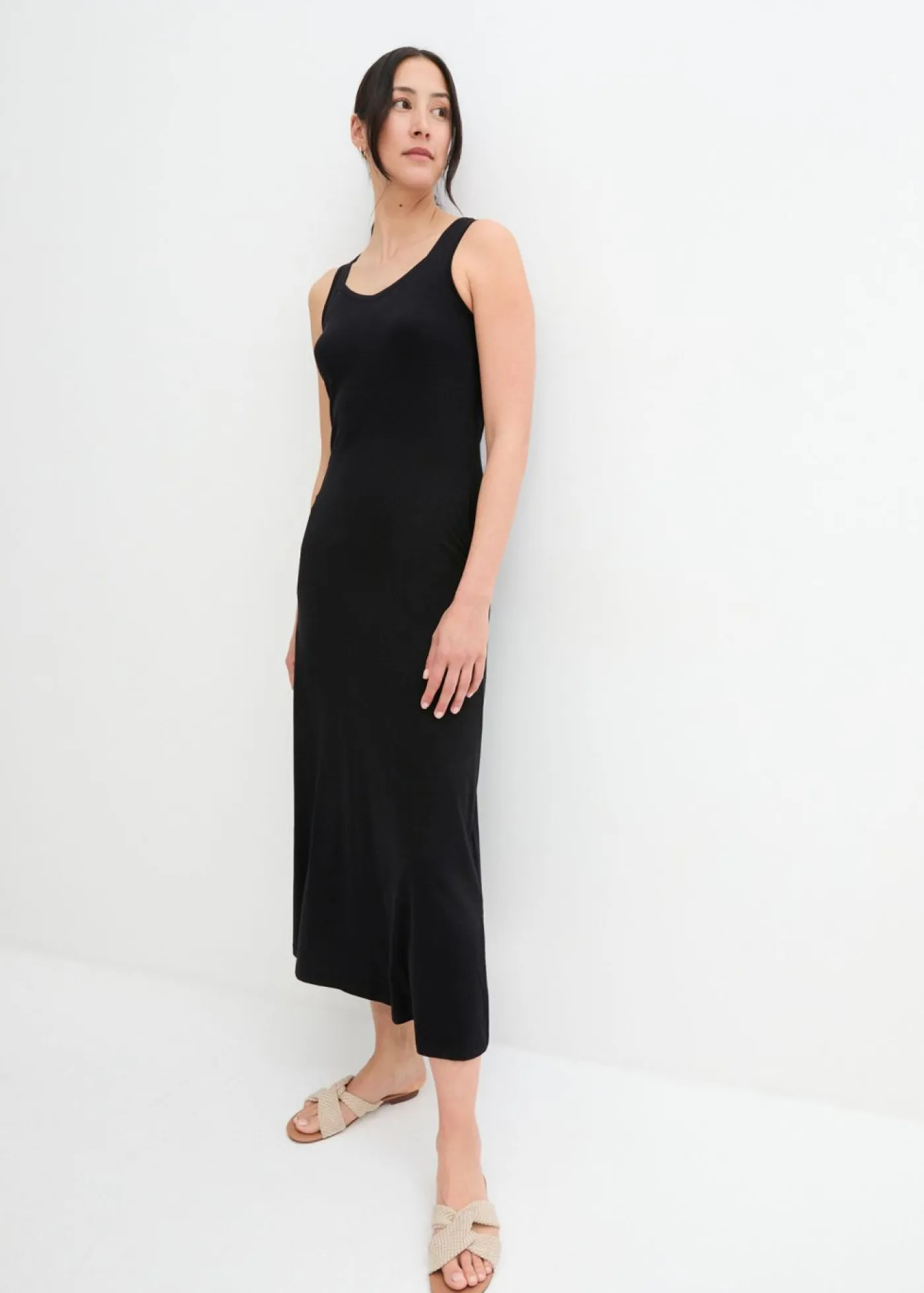 Vestido sencillo de punto con bolsillos y tirantes anchos para brindar mayor comodidad. Largo de aprox. 136 cm en talla 40/42. Se puede lavar a máquina.