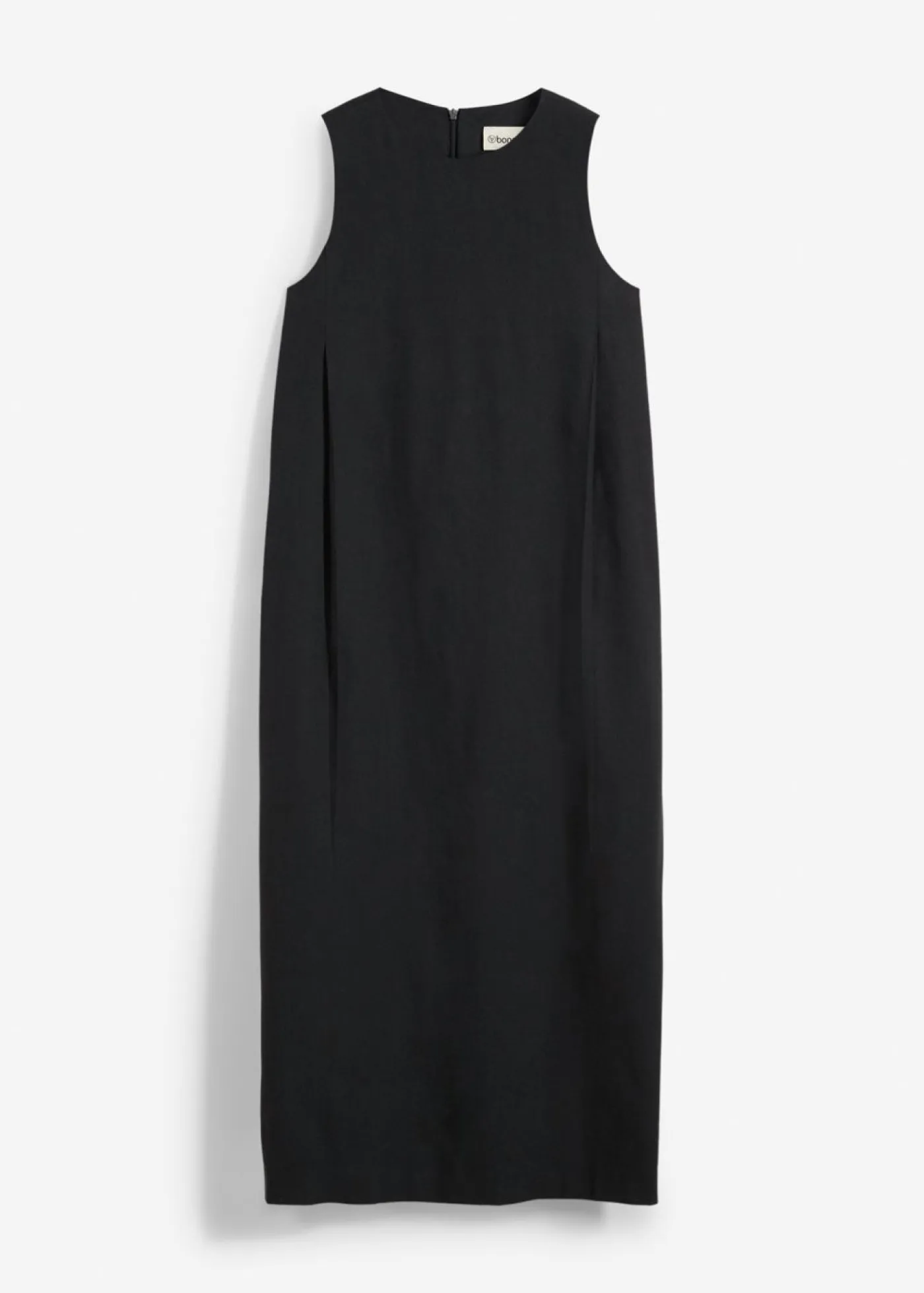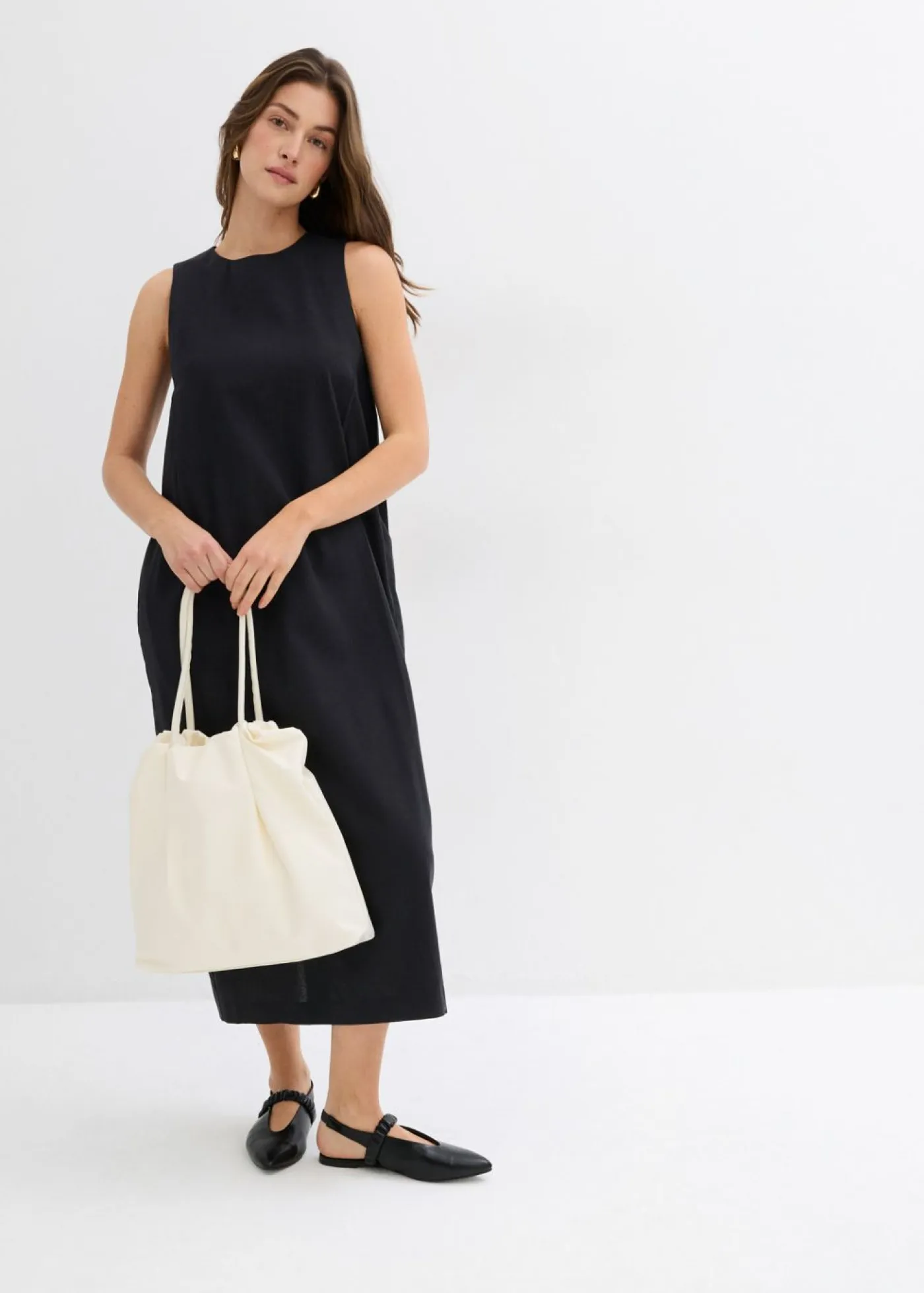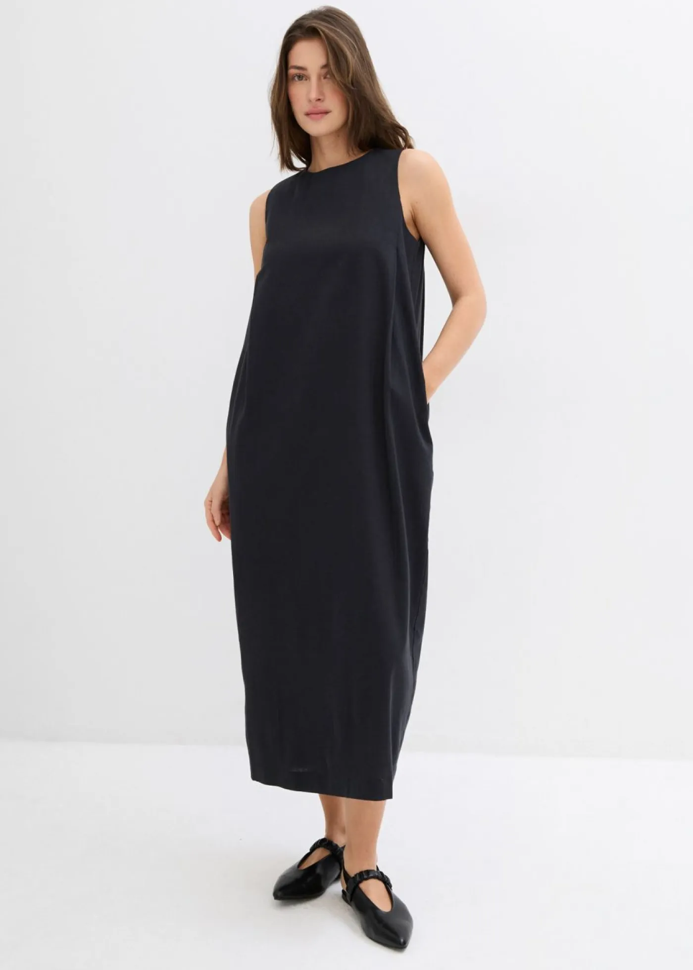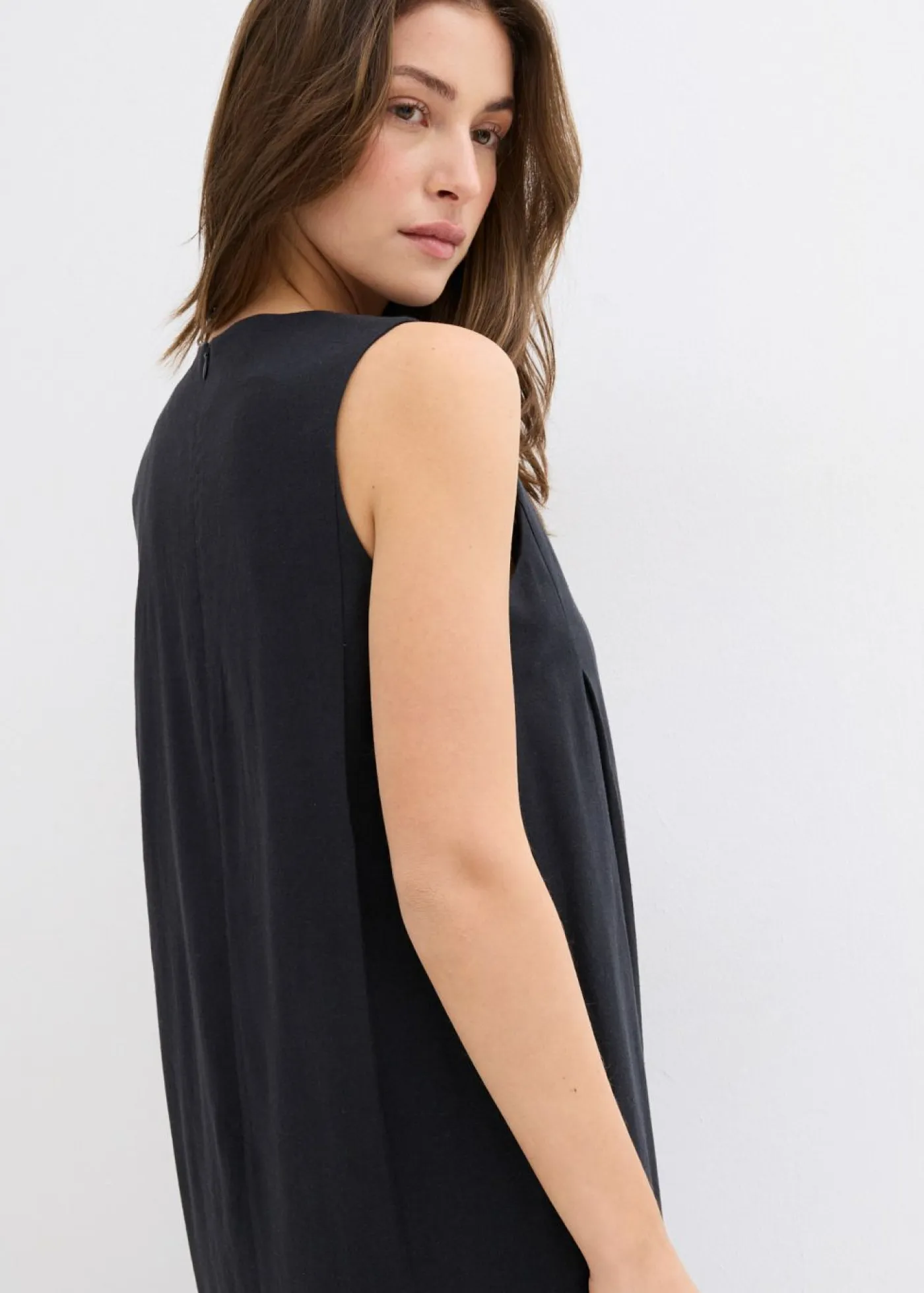 Vestido sin mangas de mezcla de viscosa con cuello redondo y bolsillos en la costura lateral.