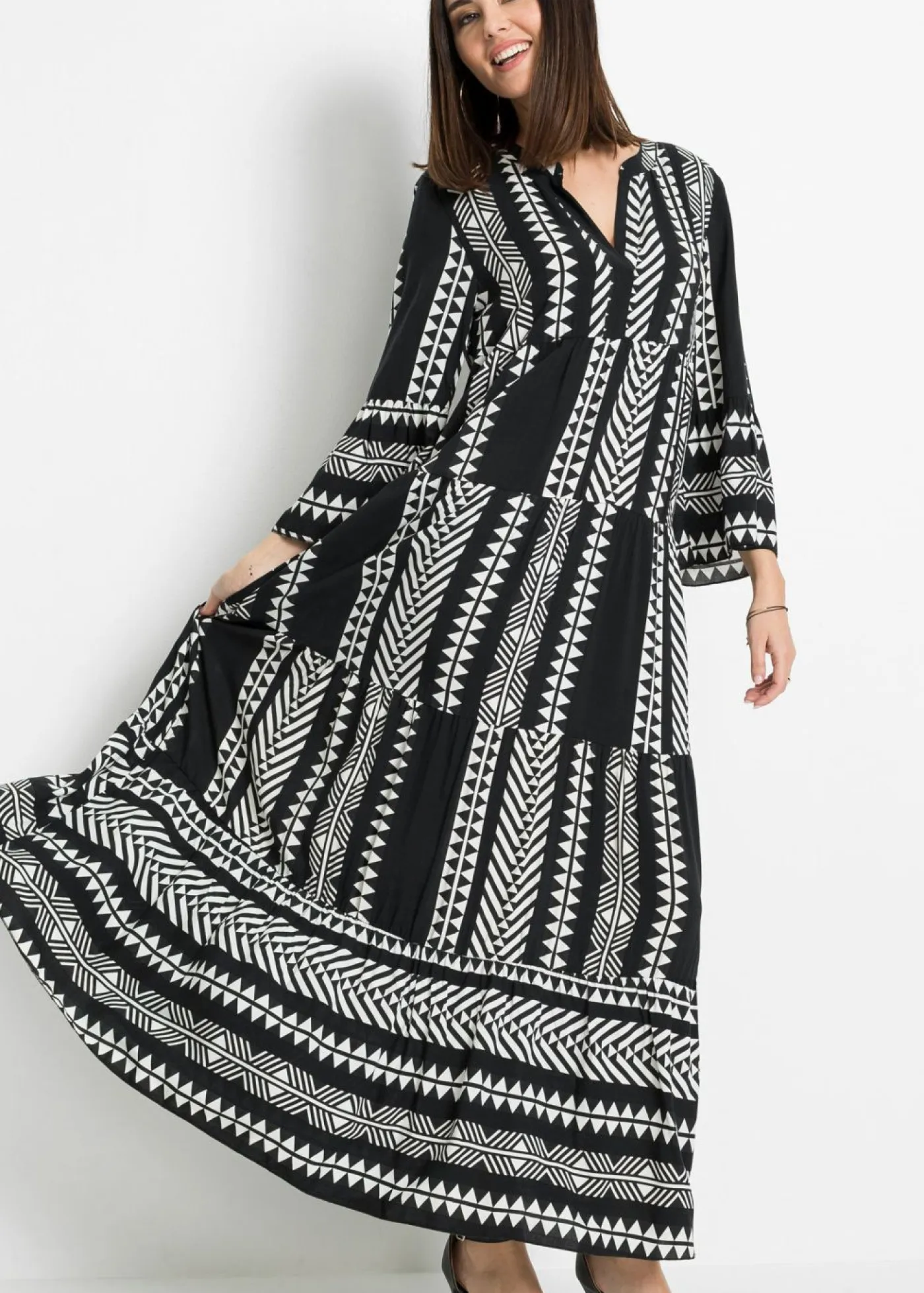 Moderno vestido largo con un bonito estampado.