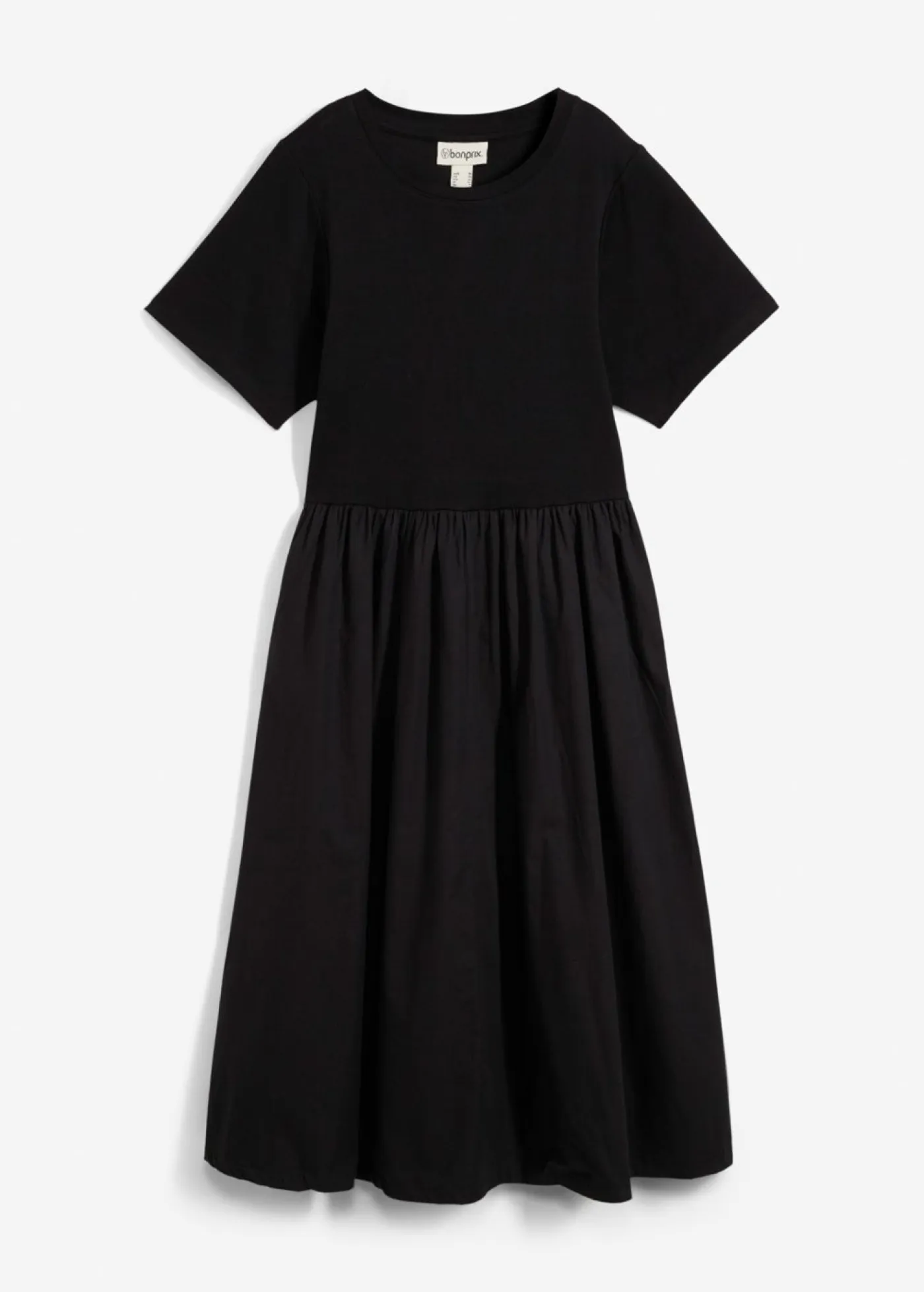 Vestido midi de manga larga con inserto de contraste.