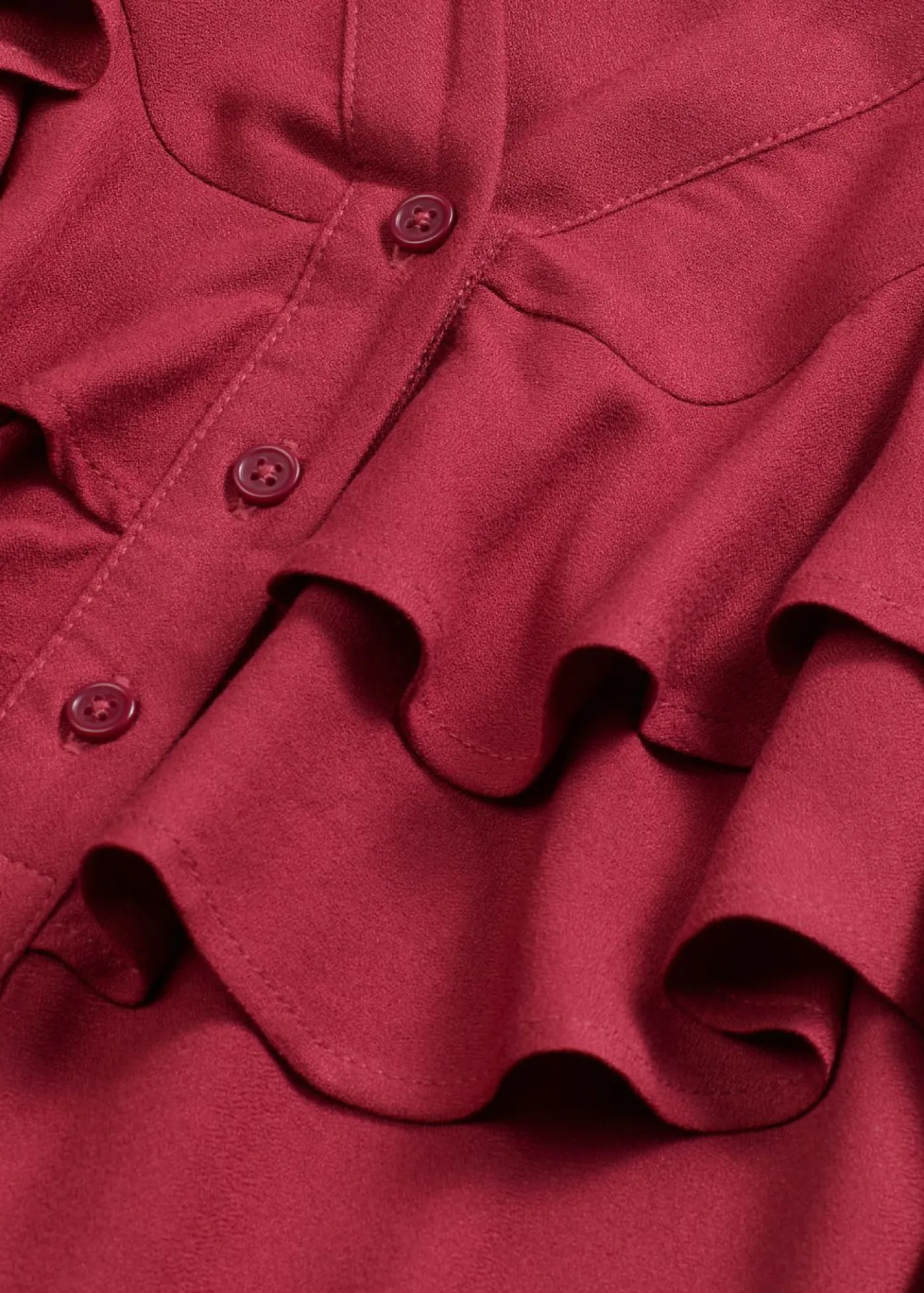 Vestido midi moderno de crepé estructurado con volantes.