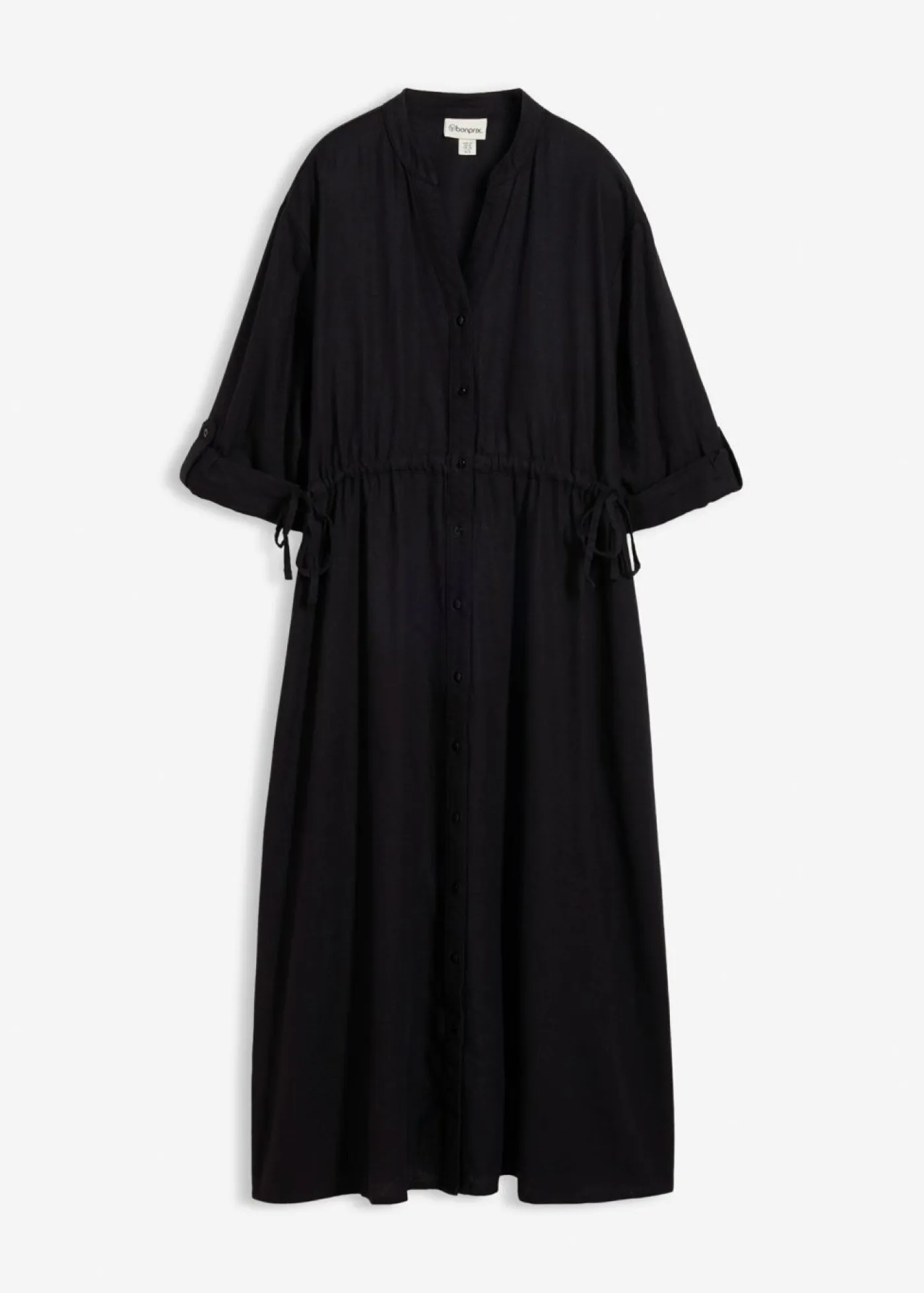 Vestido midi con mangas 3/4 y cordón ajustable en la cintura. Largo de aprox. 120 cm en talla 42. Se puede lavar a máquina.