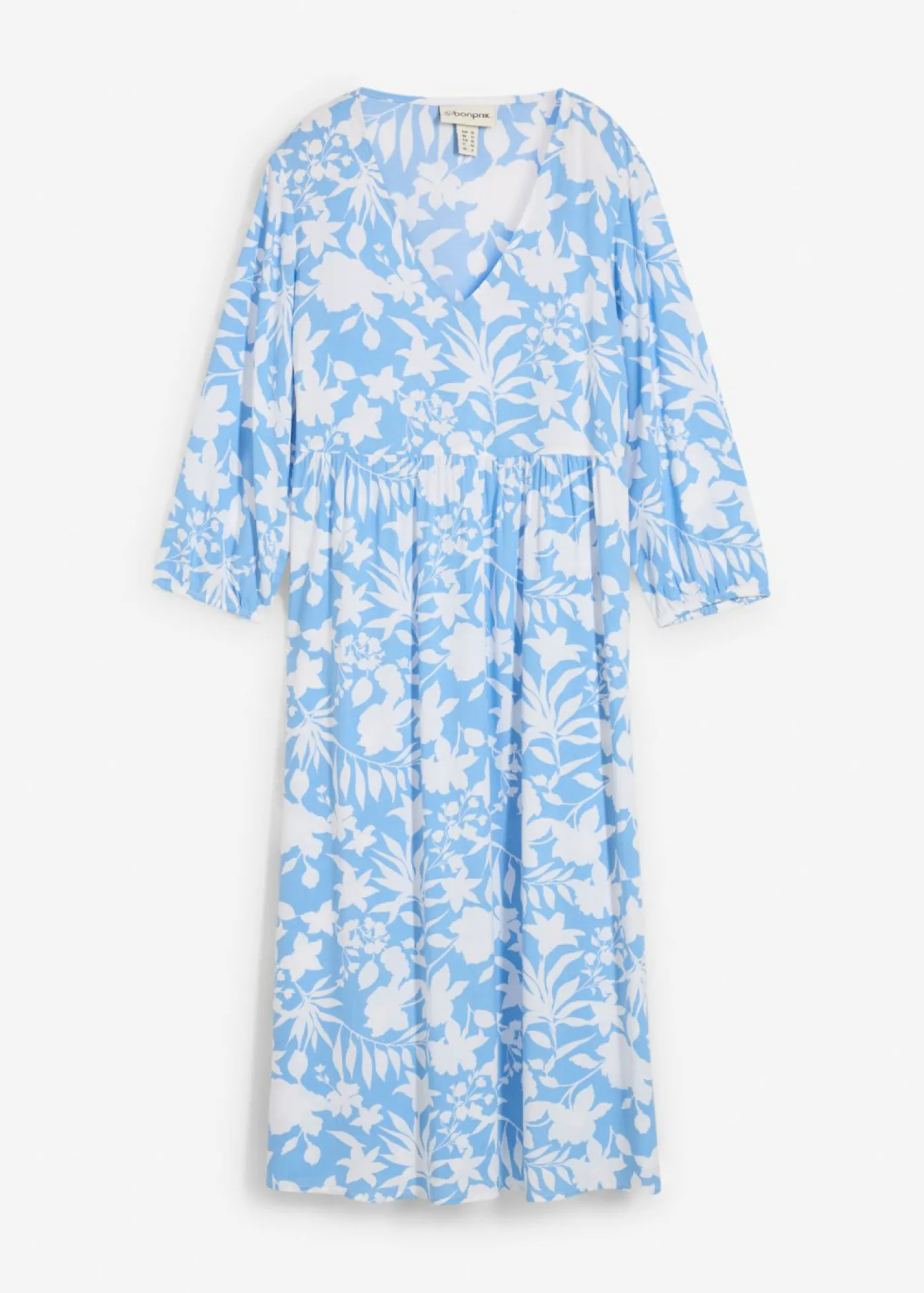 Vestido con bolsillos, escote acentuado y una ligera caída. Largo total de aprox. 114 cm en talla 42. Se puede lavar a máquina.