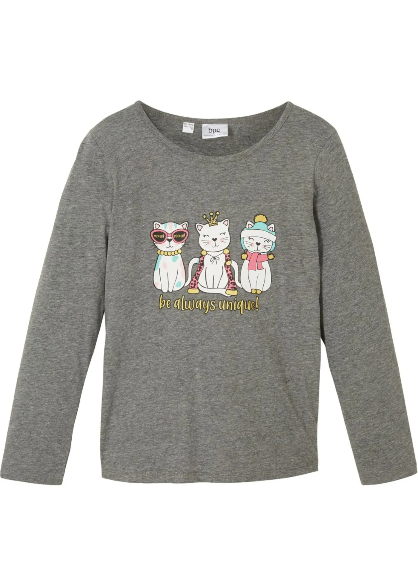 Moderna camiseta de manga larga con un bonito estampado de gatitos. Moderna camiseta de manga larga con un divertido estampado en la parte delantera. Cómodo cuello redondo y mangas largas. Ideal para llevar debajo.