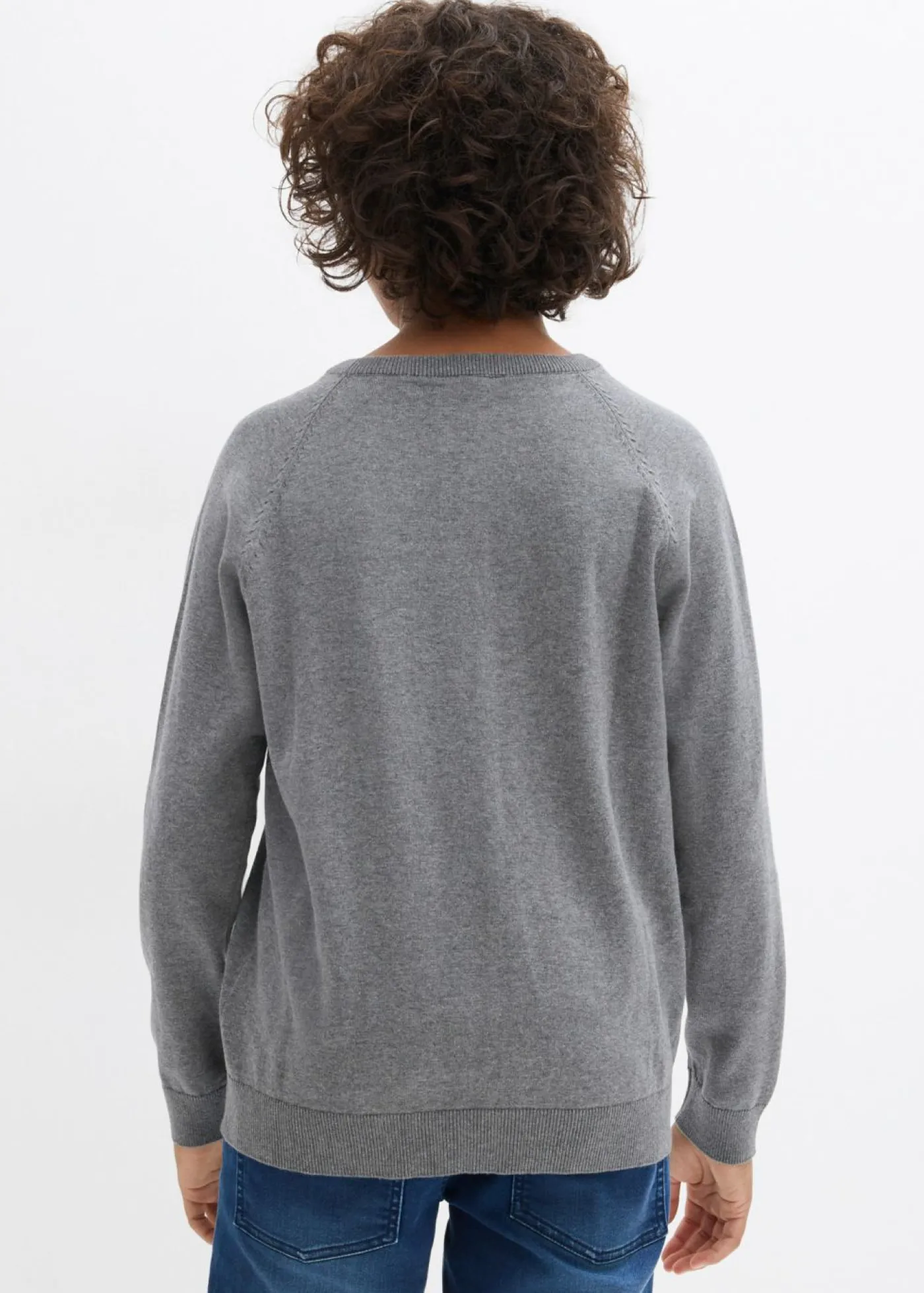 Jersey básico de algodón fácil de cuidar con cuello redondo para niños.