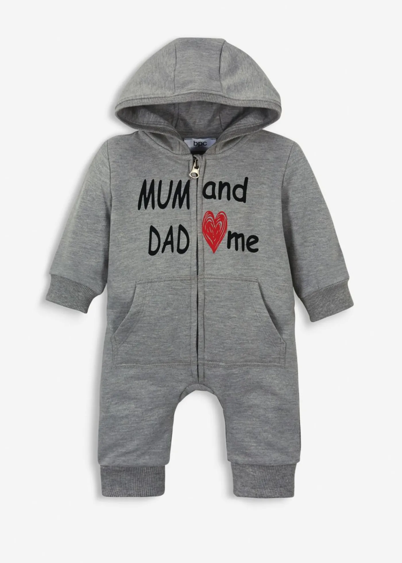 Mono de chándal de mezcla de algodón con capucha para bebés. Bonito mono para bebés de suave de chándal con capucha y bolsillos tipo canguro. El estampado «Mum and Dad love me» atrae todas las miradas. Los suaves puños de canalé y el corte cómodo garantizan que tu bebé se sentirá muy a gusto.