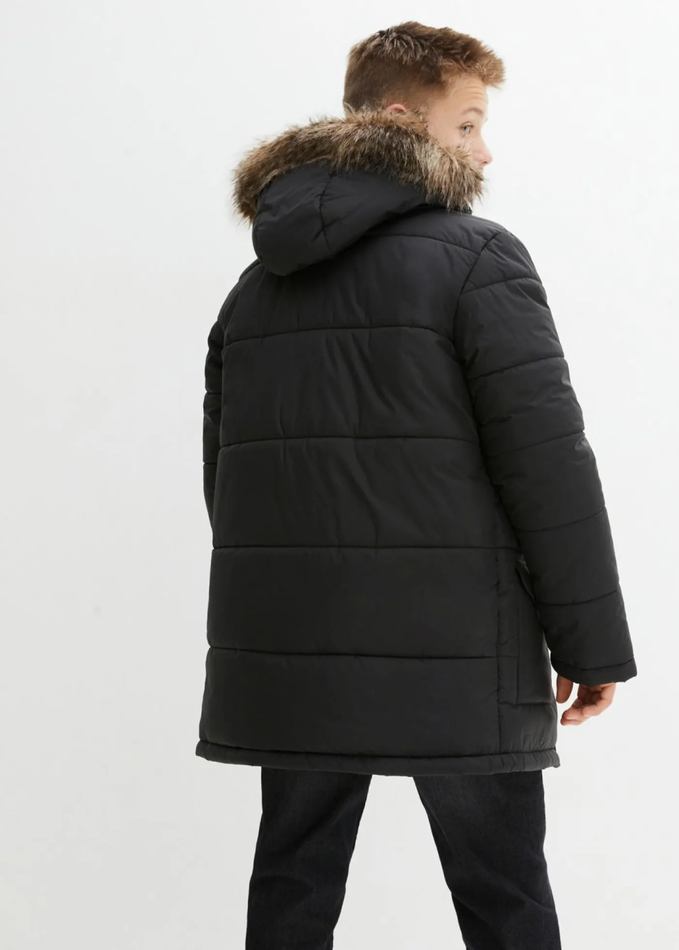 Parka de invierno con detalles de piel sintética y capucha de pelo