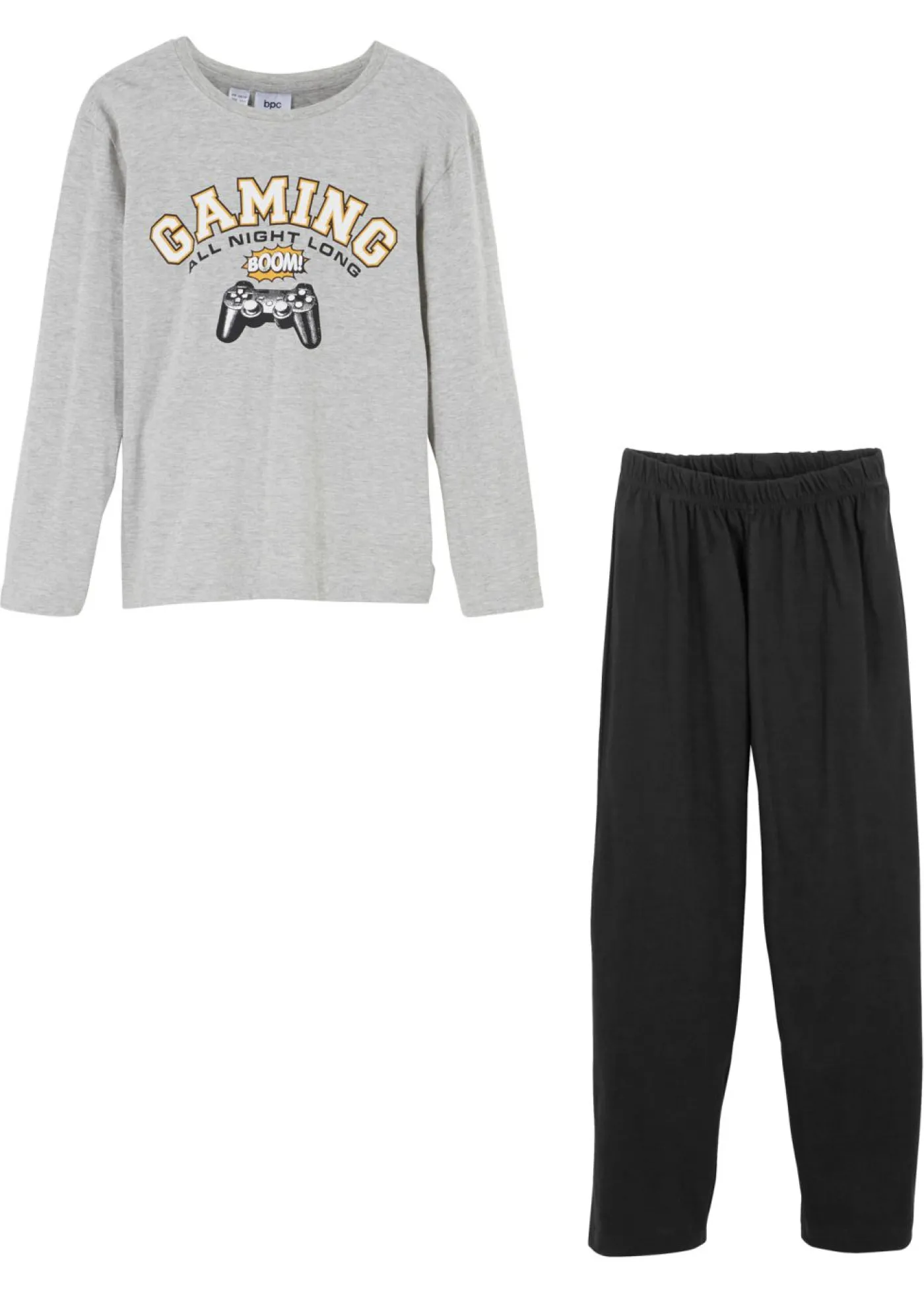 Pijama moderno con estampado de videojuegos. Moderno pijama para niños con corte informal y un estampado de videojuegos en la parte delantera de la prenda superior. El pijama se ha confeccionado con cómodo algodón orgánico y el pantalón cuenta con una cintura elástica para ofrecer la máxima comodidad. Ideal para niños modernos.