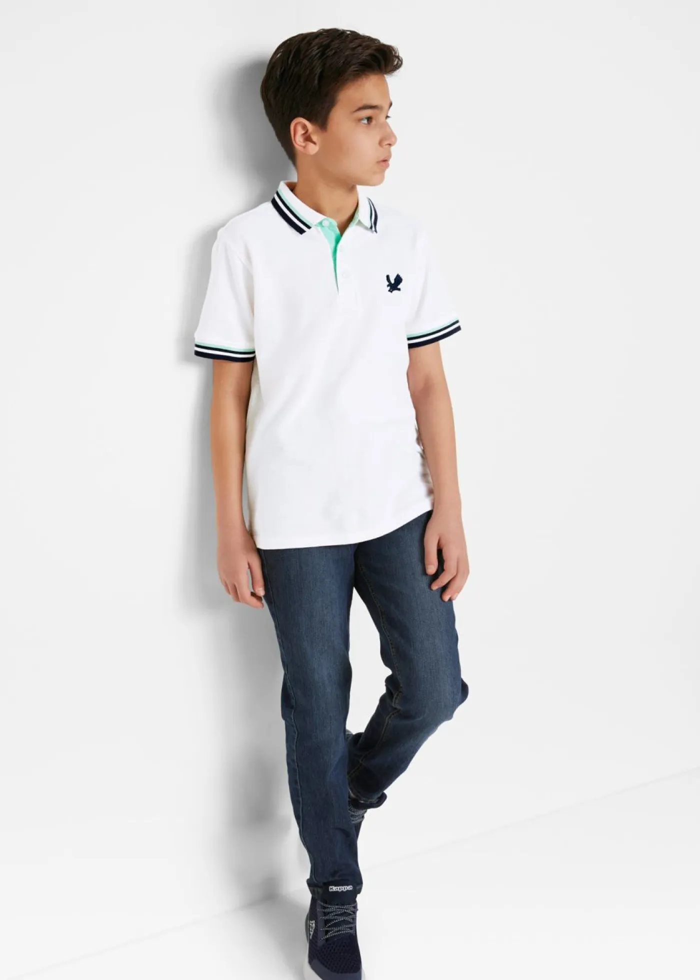 Polo moderno con bordado. Este polo informal puede combinarse con un pantalón tipo chino y zapatos náuticos para crear un atuendo marinero. Enamorará a todos los niños que adoran el mar. Esta camiseta de manga corta con cuello también atraerá las miradas en el colegio.