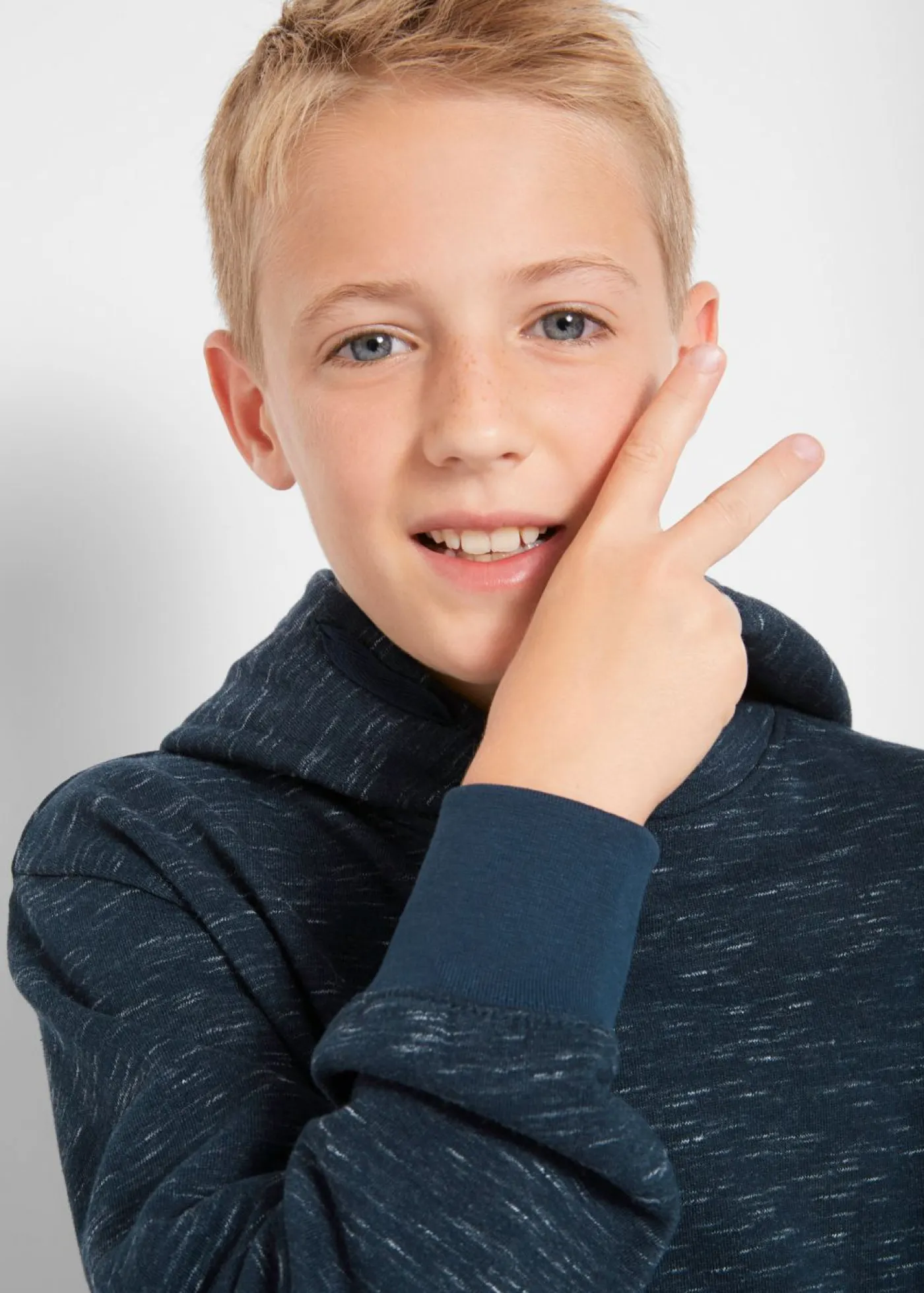 Sudadera deportiva con capucha para niños. Moderna sudadera de capucha con aspecto jaspeado. Su diseño la convierte en una prenda muy fácil de combinar. Además, al ser holgada, resulta muy cómoda. La sudadera queda muy bien con pantalón vaquero o chino, y es perfecta para llevar a clase o disfrutar del tiempo libre.