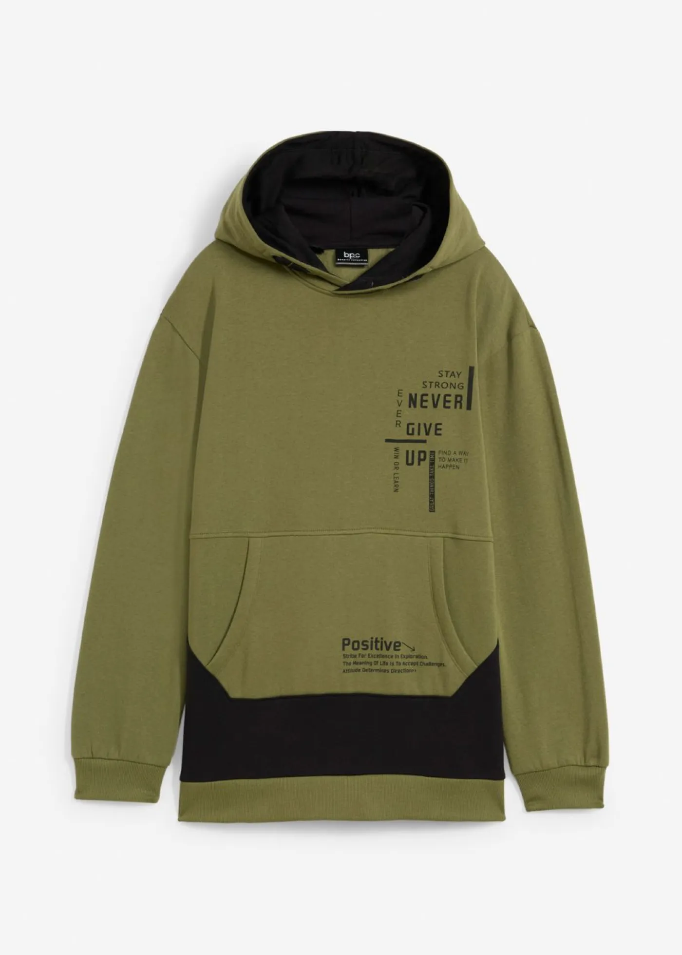 Moderna sudadera con capucha y bolsillo tipo canguro.