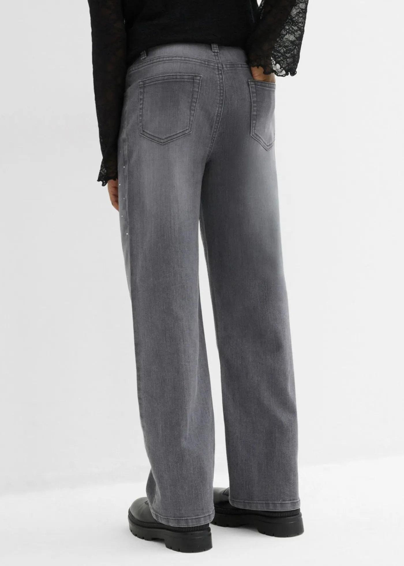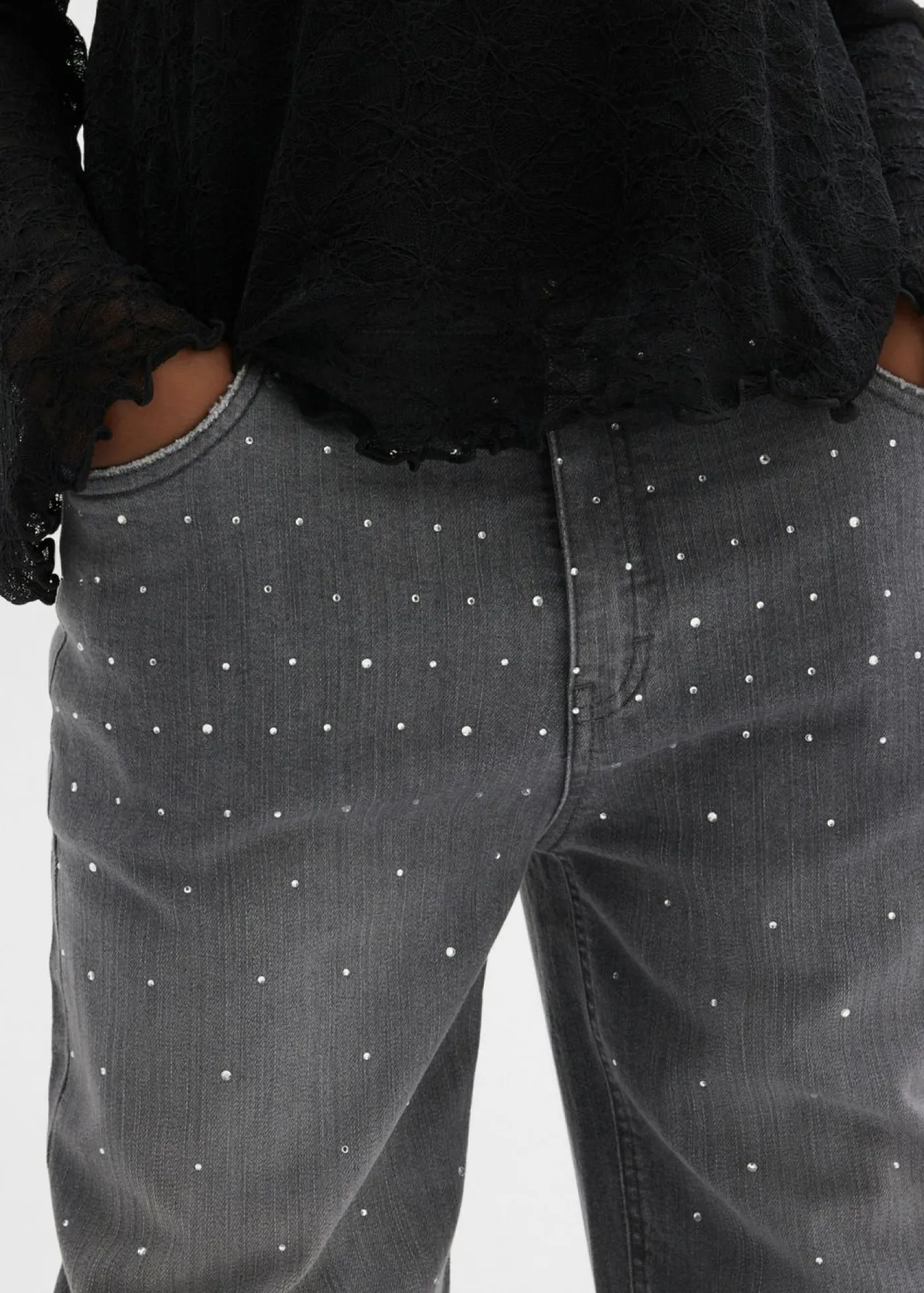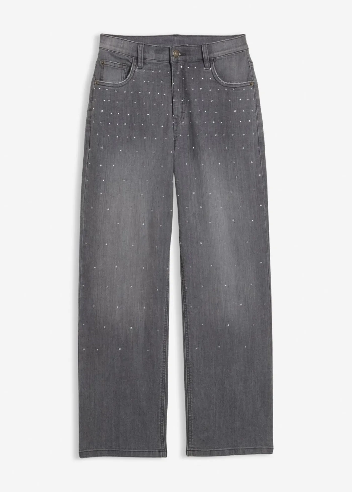 Vaqueros con perneras anchas, piedras brillantes y talle medio