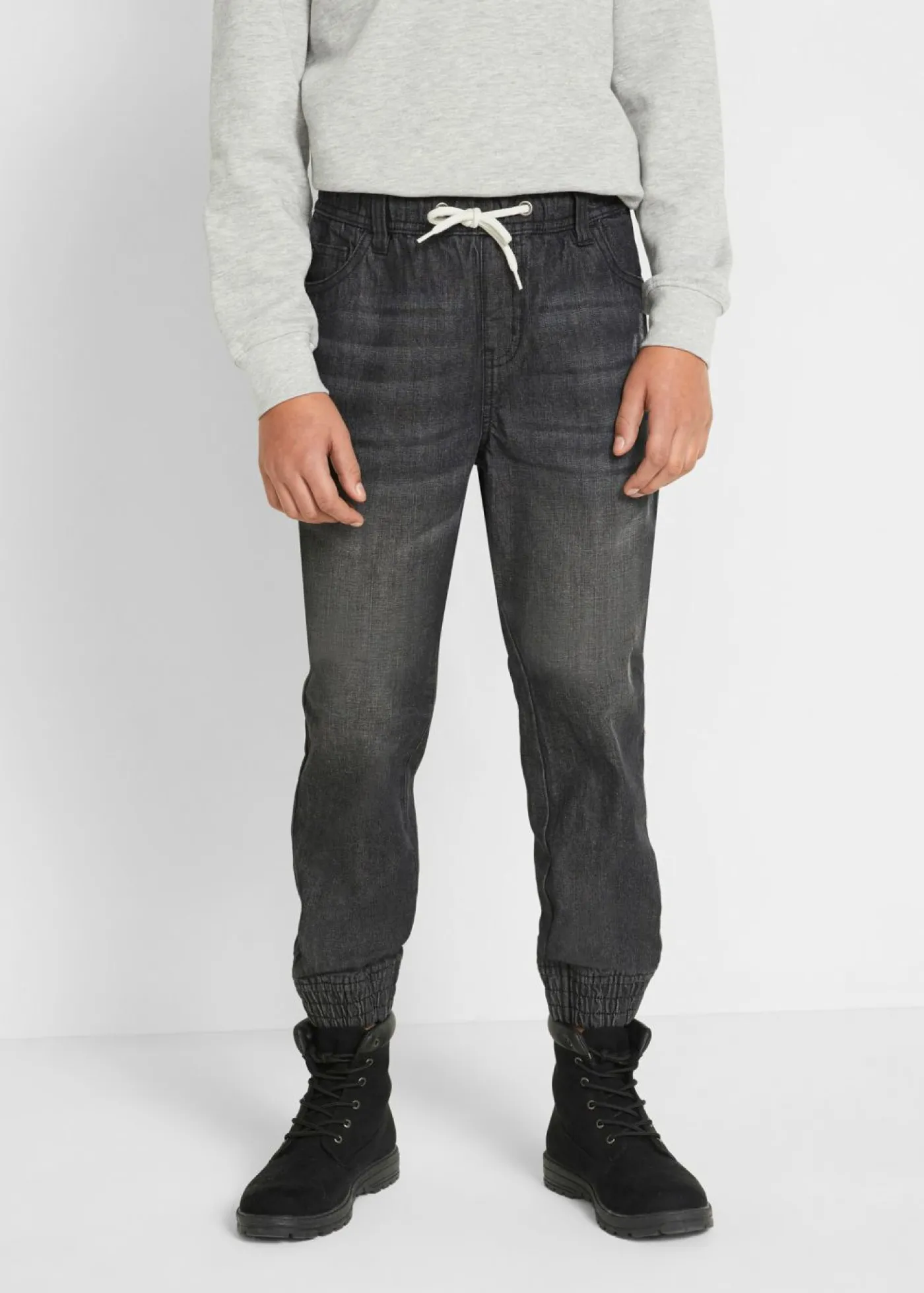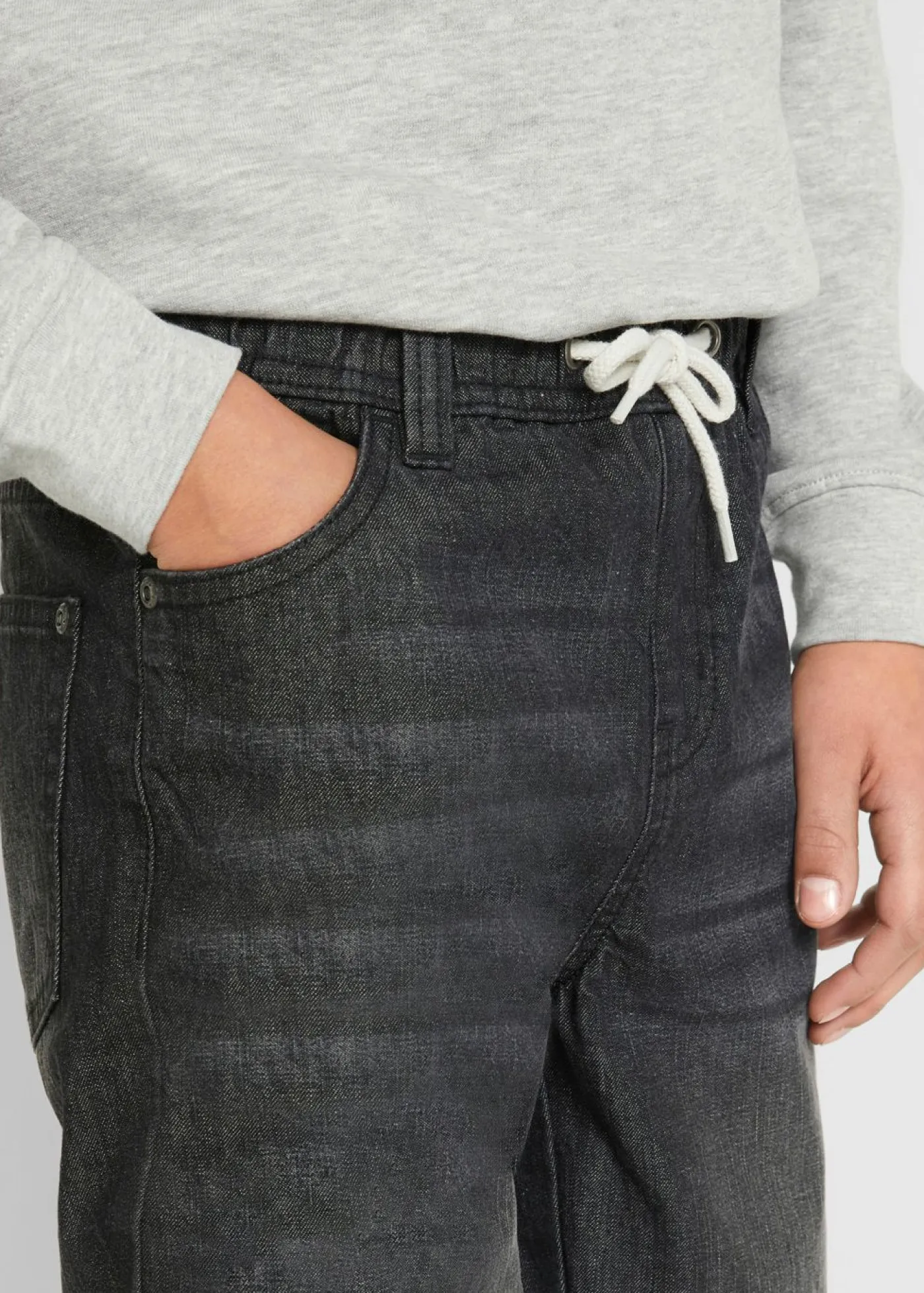 Moderno pantalón sin cierre para niños con efecto lavado y cinturilla cómoda. Estos modernos vaqueros (2 unidades) son ideales para el tiempo libre y el colegio cuando se combinan con un jersey y unas zapatillas deportivas. Los puños elásticos en la parte inferior de las perneras, la cintura elástica con cordones y el suave tejido de algodón garantizan la máxima comodidad del pantalón. El lavado moderno convierte a este pantalón sin cierre en una prenda a la última.