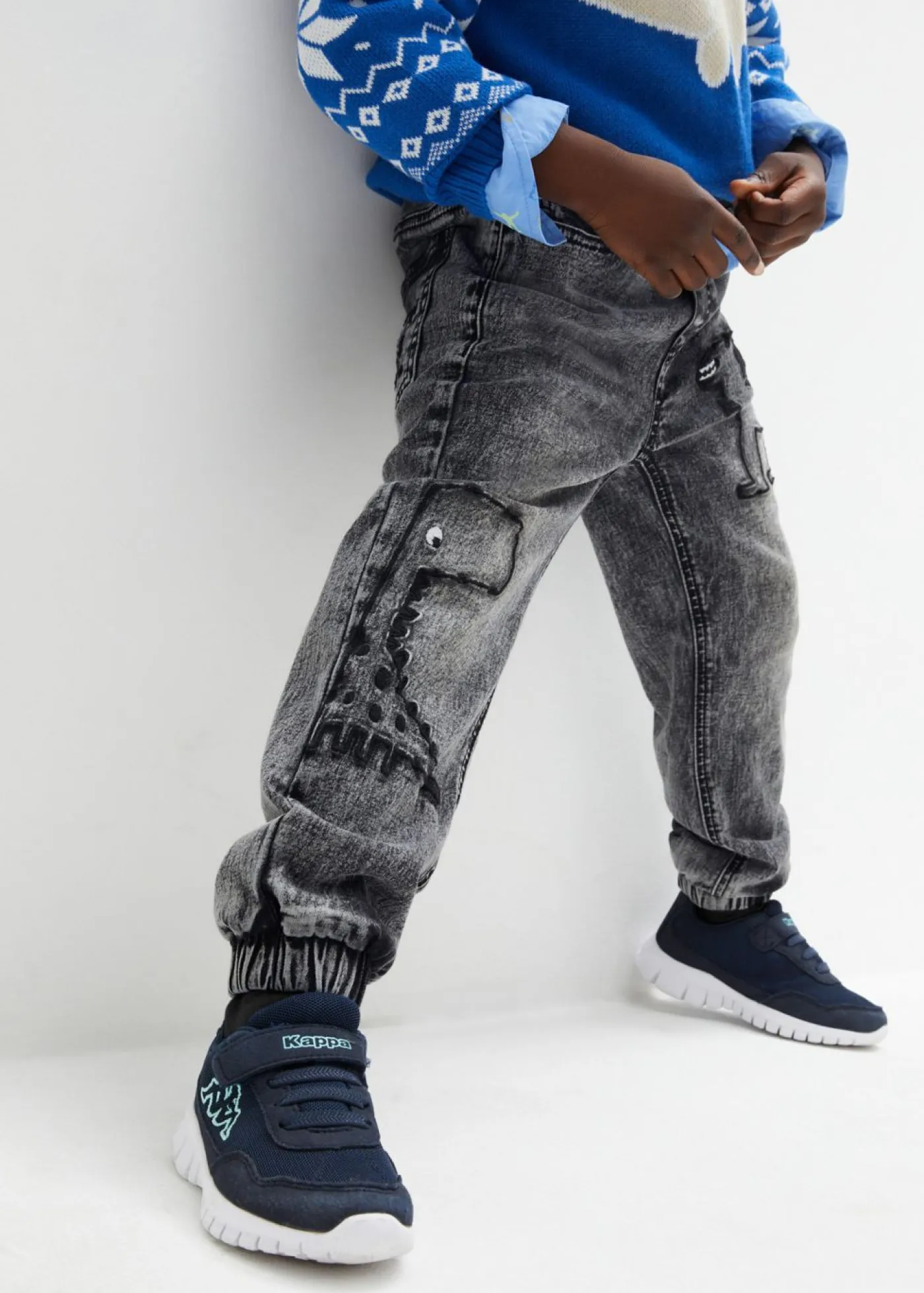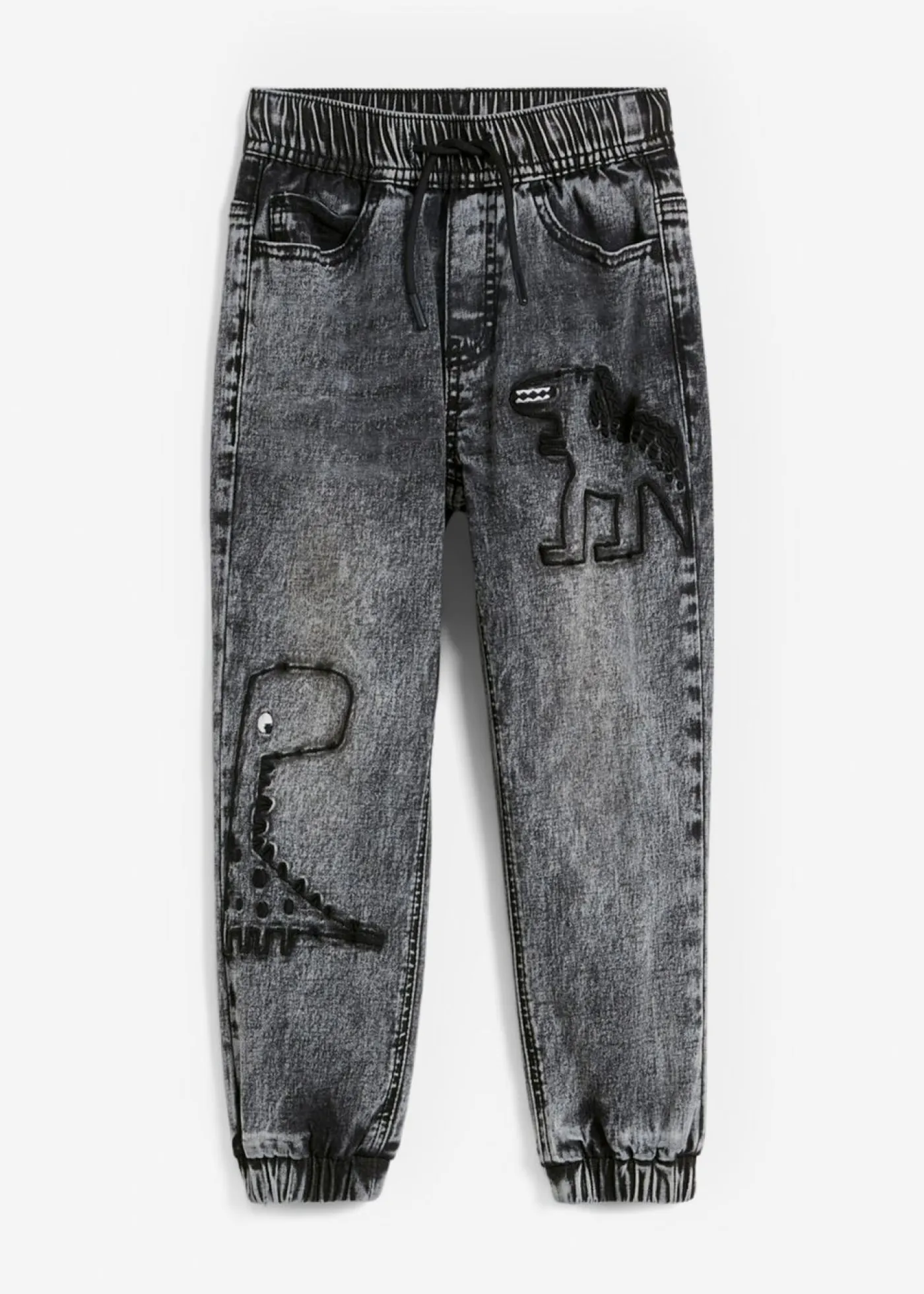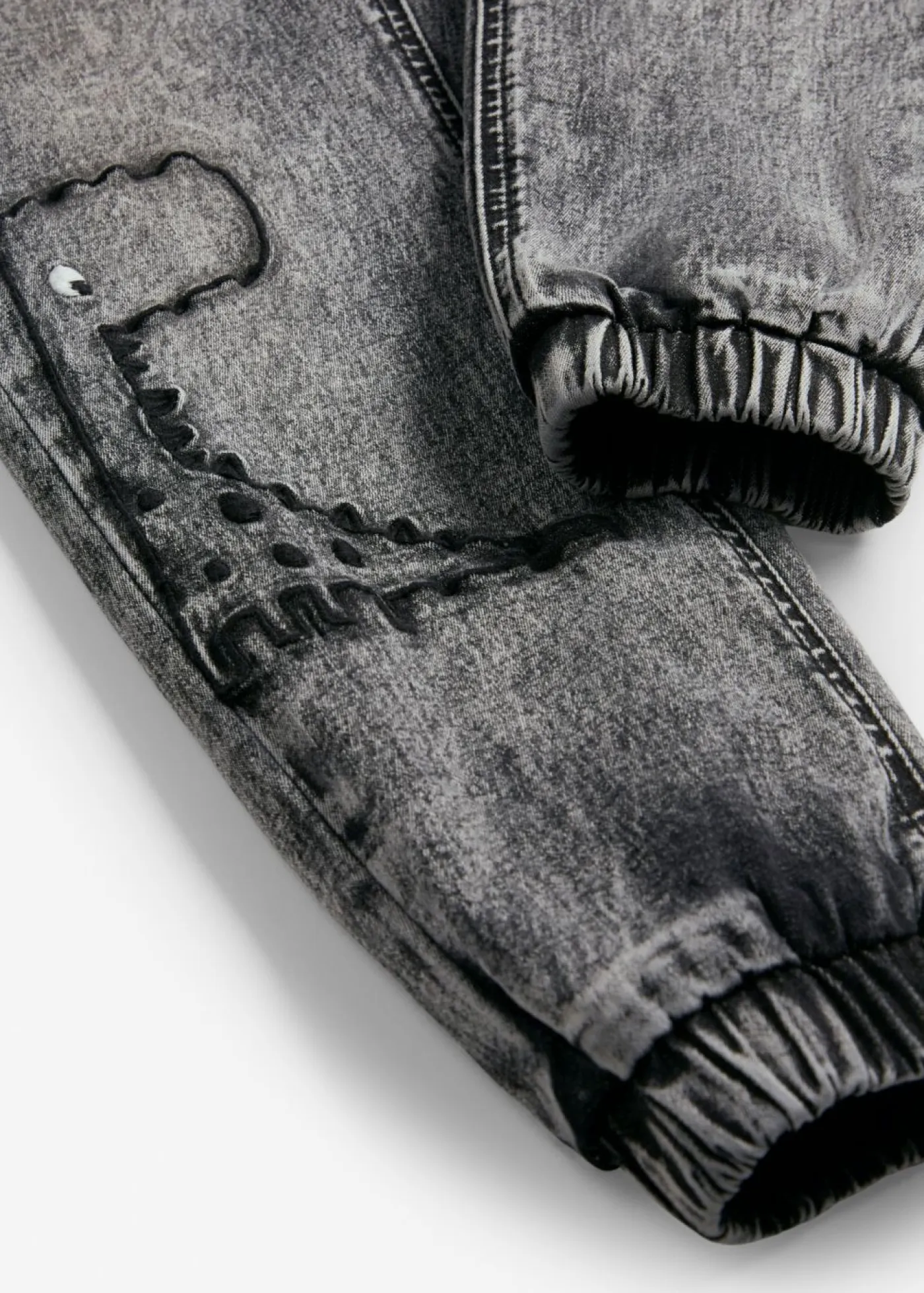 Bonitos vaqueros térmicos con bordado de dinosaurio para niños.