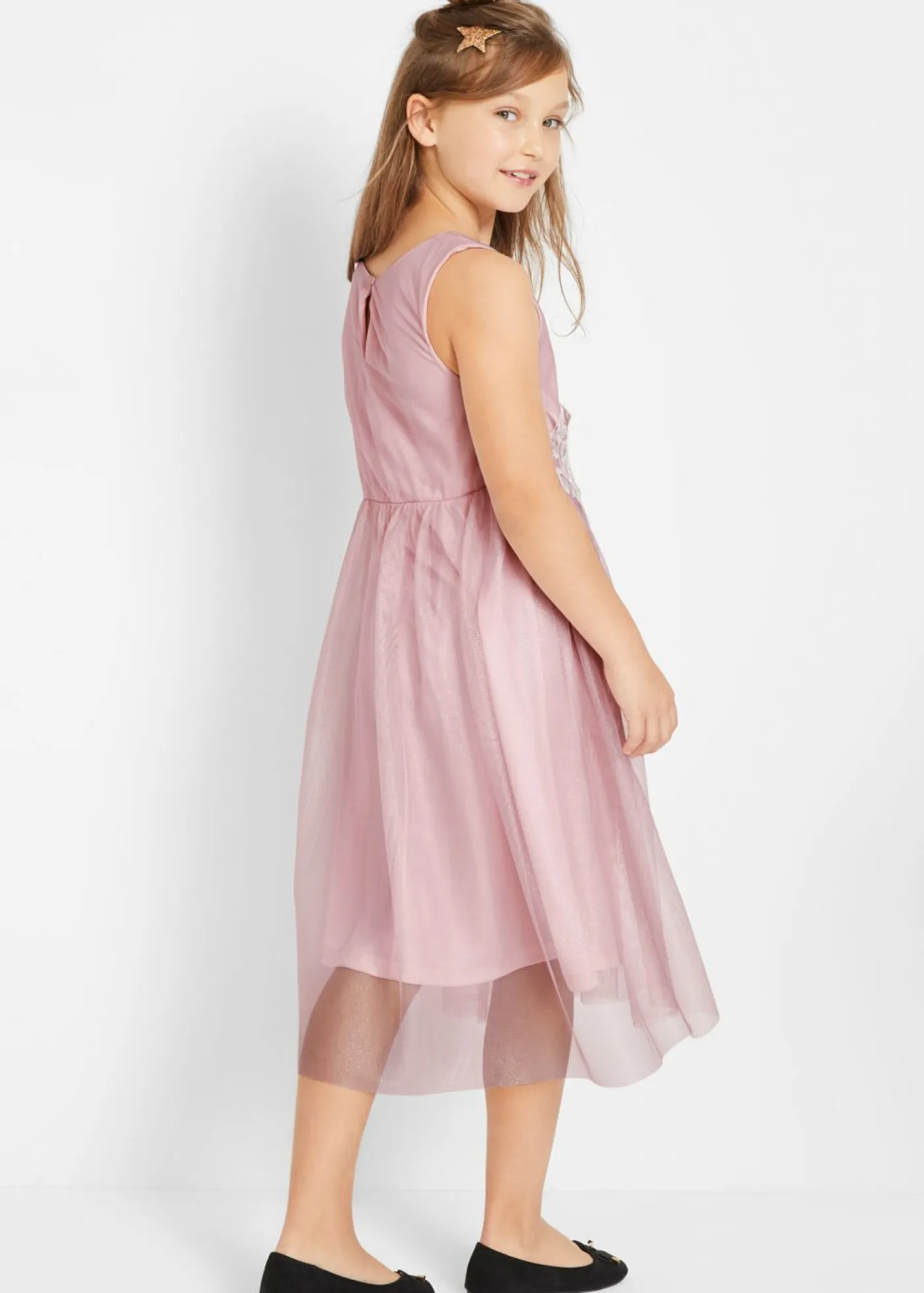 Vestido de fiesta con ribete de encaje para niñas. Vestido sin mangas con bonita inserción de encaje en la cintura.Discreto aspecto brillante en la falda.